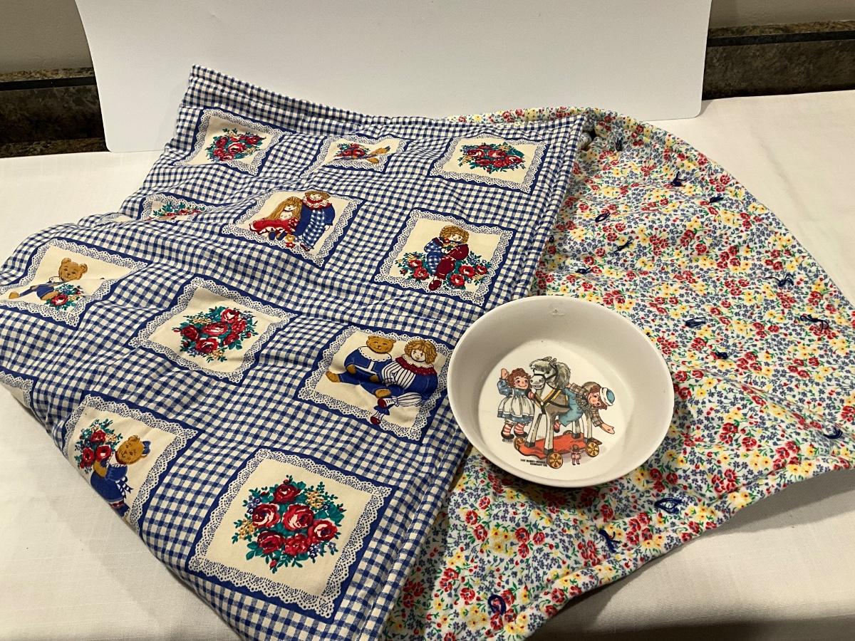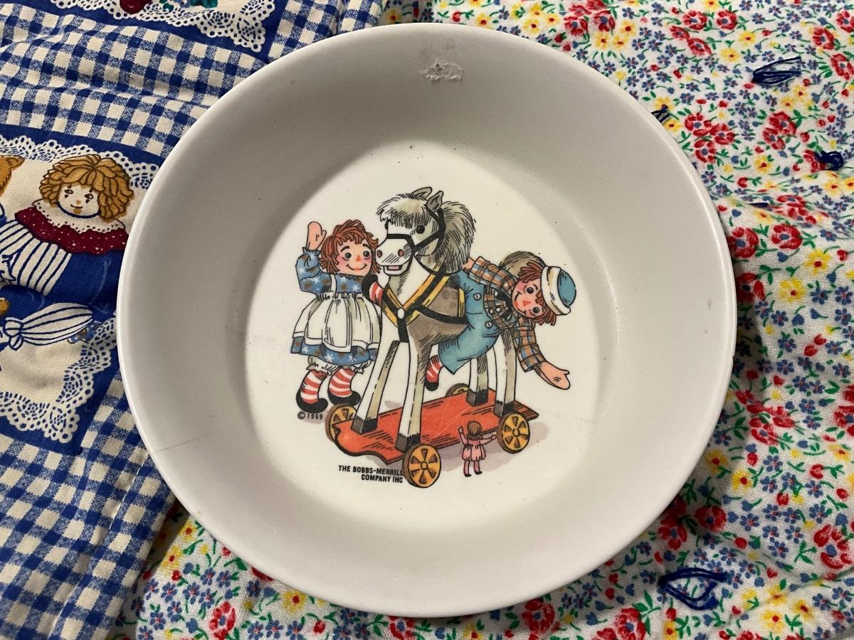 Raggedy Ann/Andy 1969 Bowl with small quilt