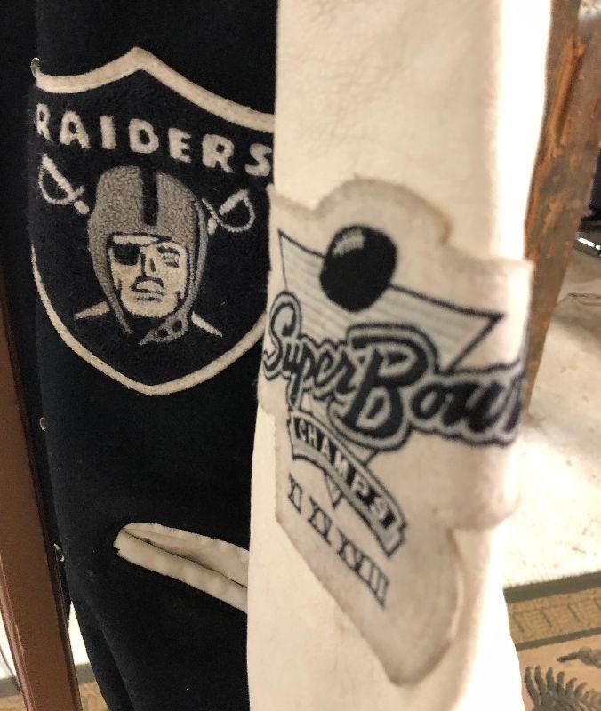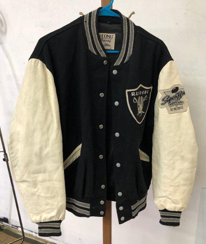 Size 42 on this vintage Raiders Football letterman's jacket...Normal use...