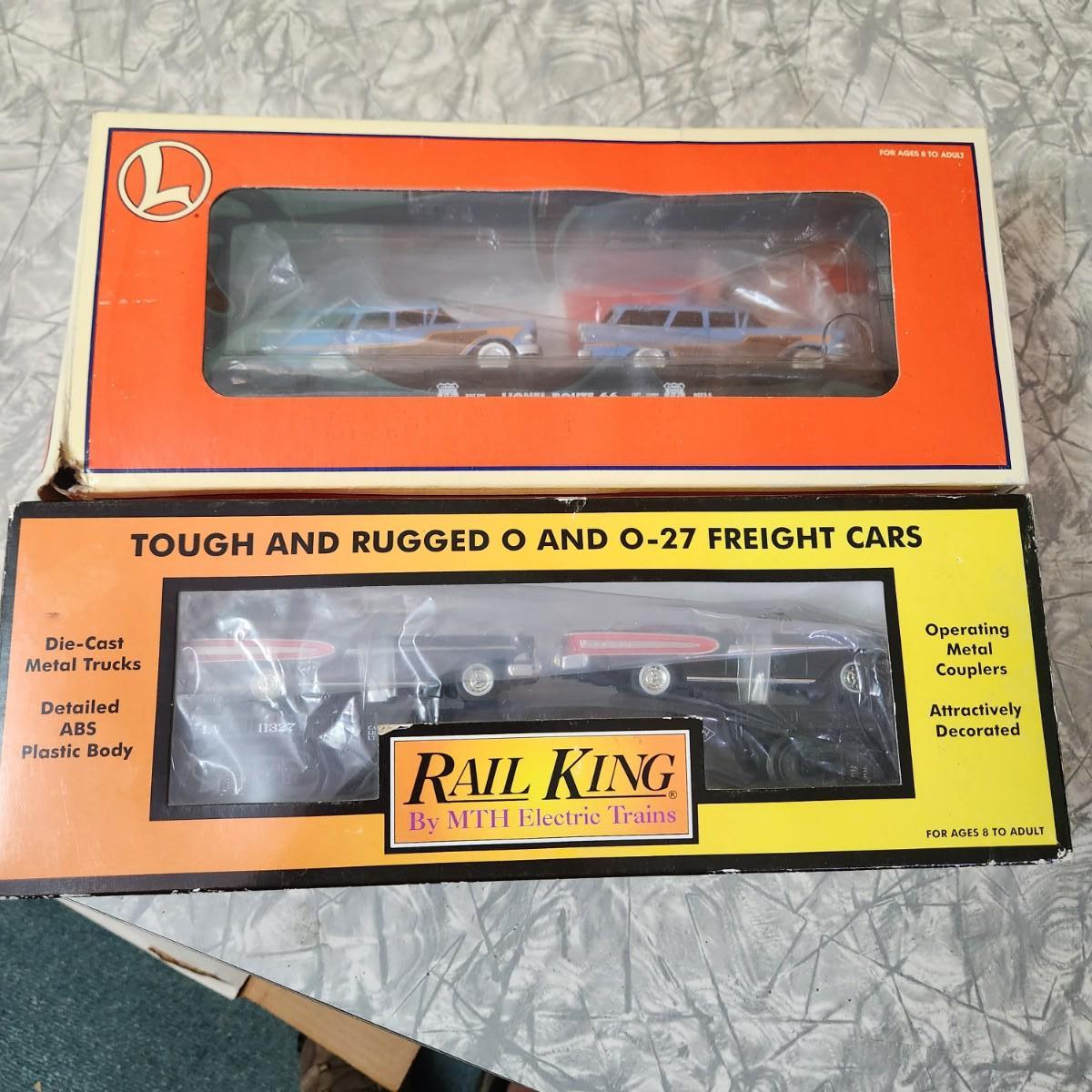 Rail King MTH 30-76246 Lehigh Valley 2 1958 Edsel Citations & Lionel 6-17548 O Gauge Route 66 Car Carrier