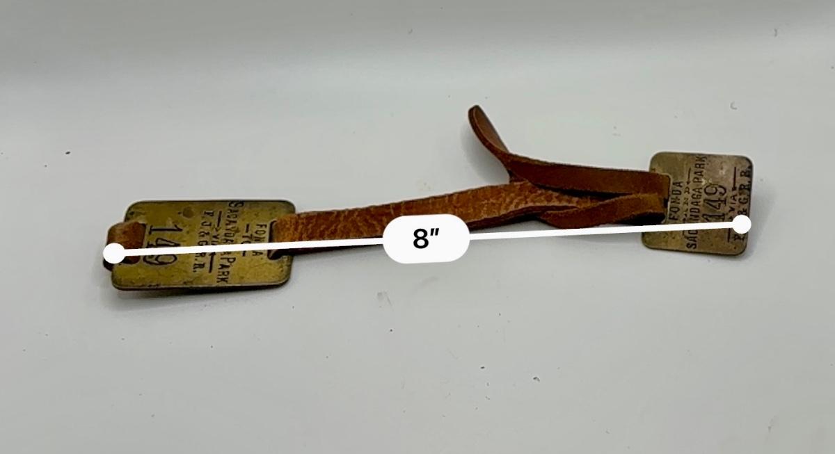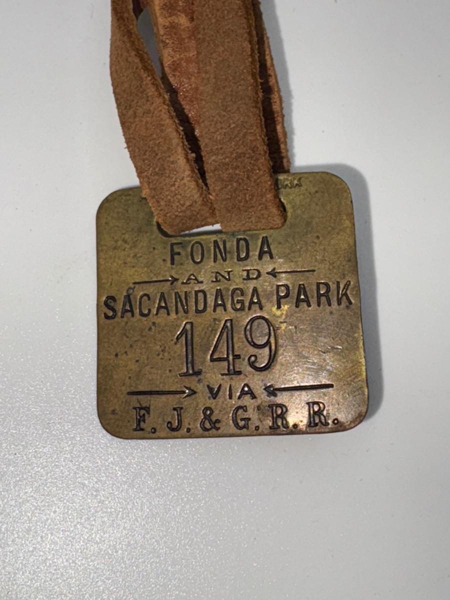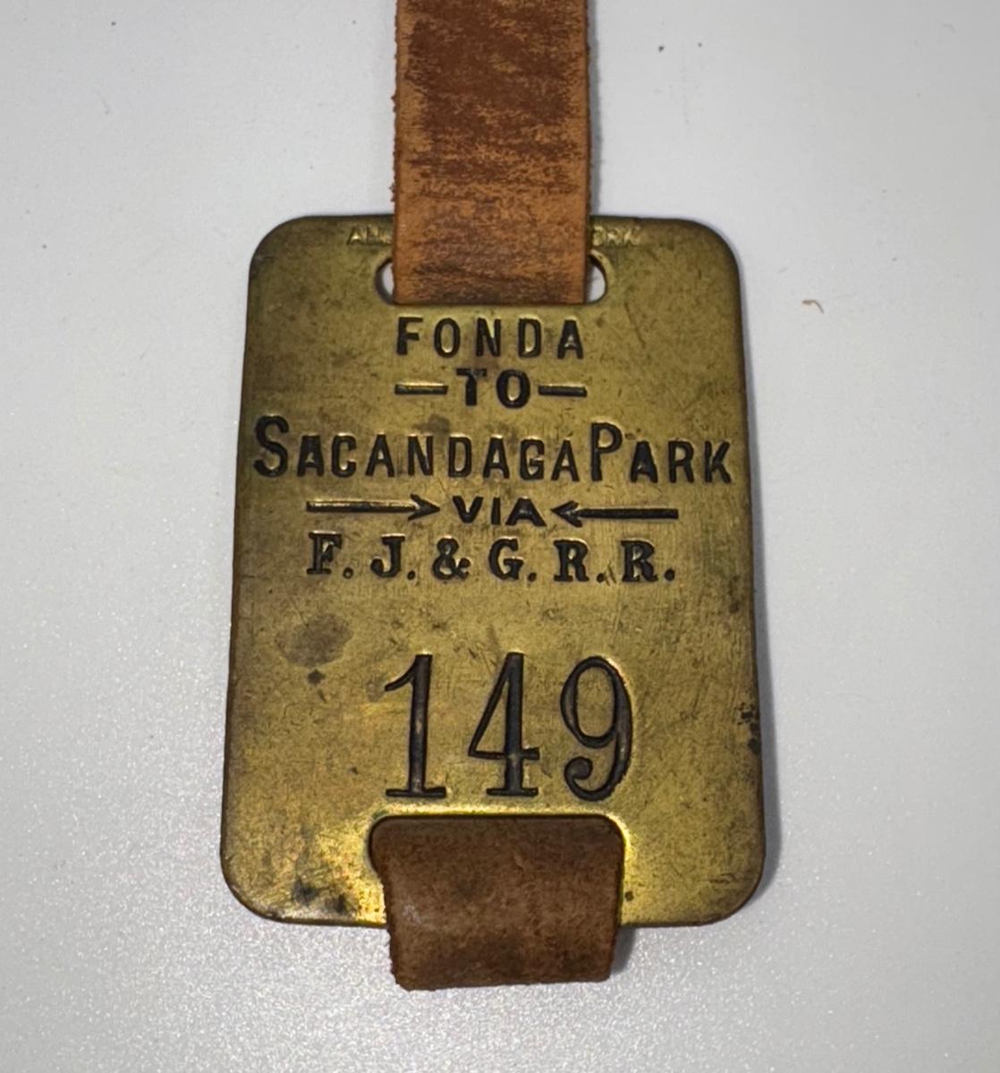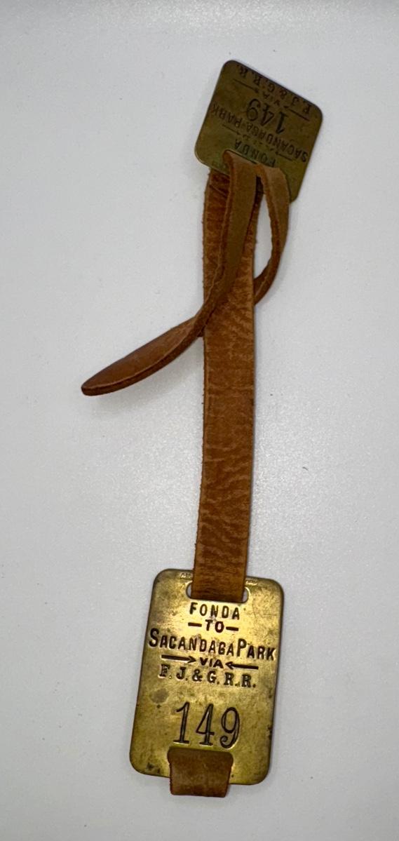 Railroad - Fonda, Johnstown, & Gloversville Railroad FJ&G RR Brass Luggage Tags W/Leather Strap