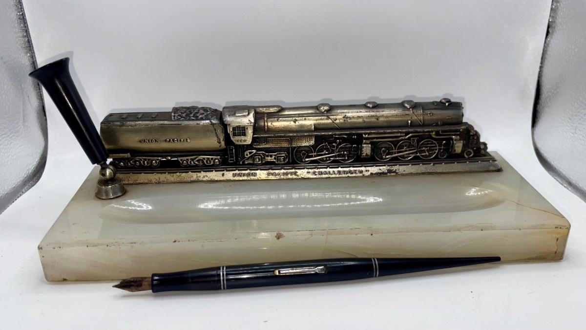 Railroad - Ca 1940 Union Pacific Railroad UPRR Challenger Desk Set W/Marble Base