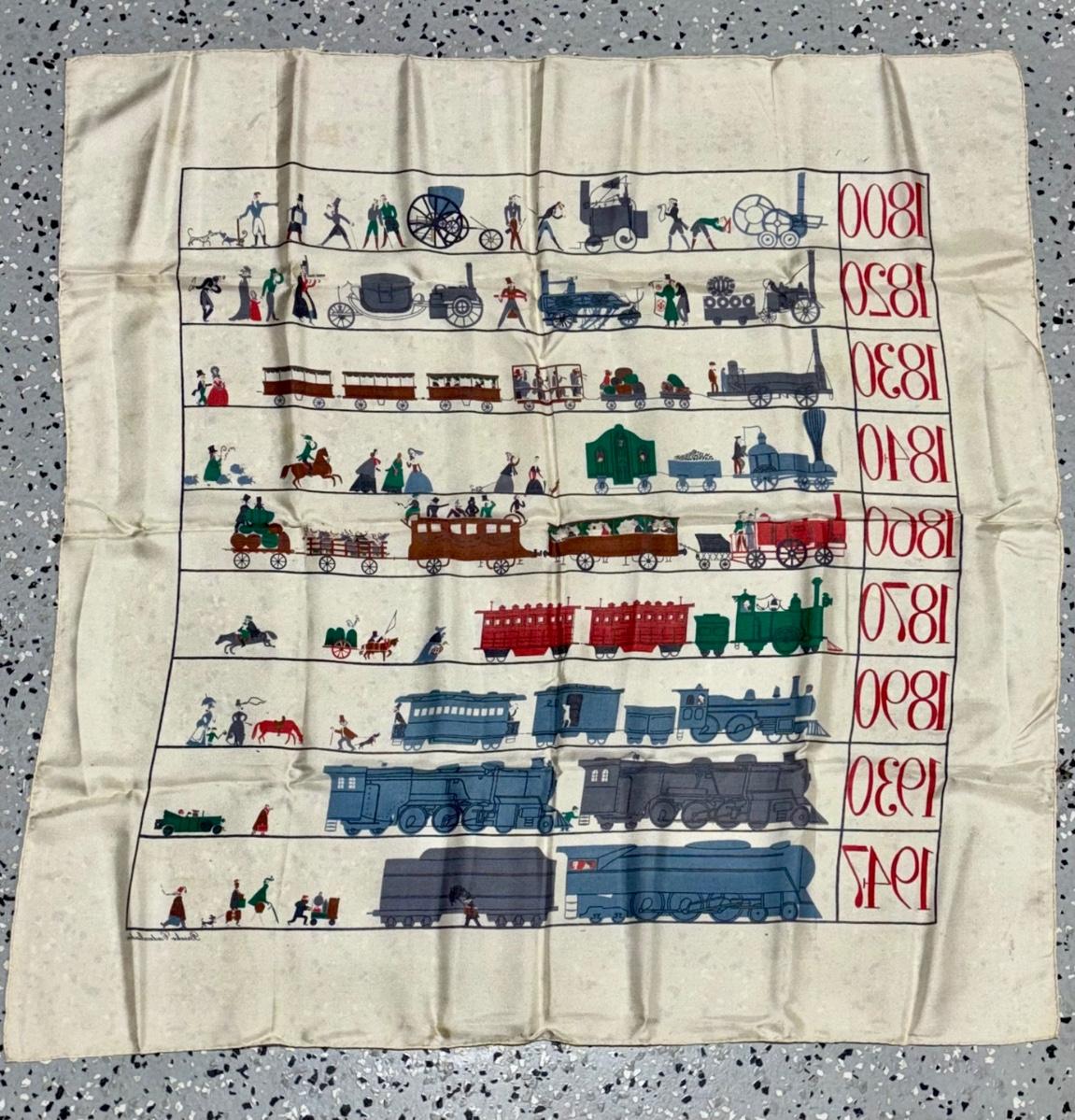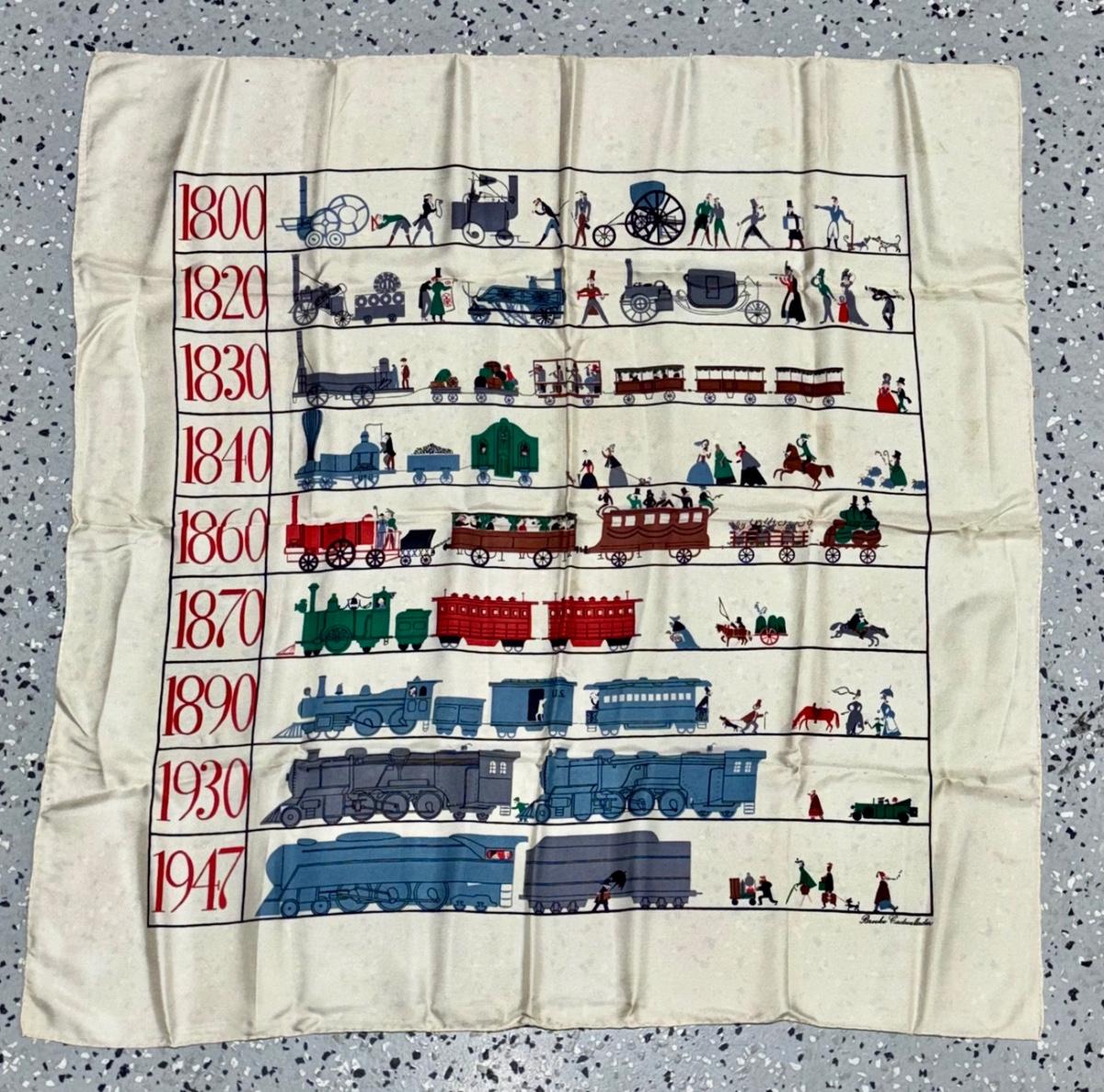 Railroad - Ca 1947 History of Railroads Silk Scarf by Brooke Cadwallader