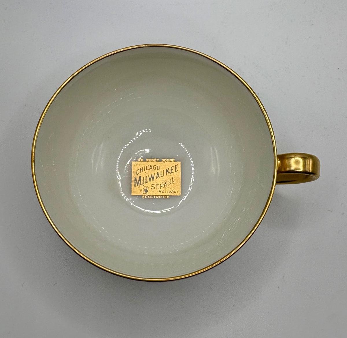 Railroad - Chicago, Milwaukee, & St. Paul Railway Haviland Limoges Cup & Saucer in Olympian Pattern