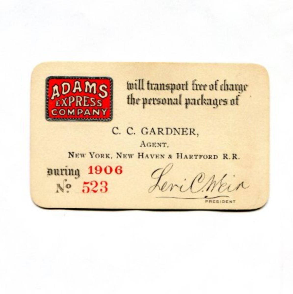 Railroad - 1906 Adams Express Co Transport Pass for NY, New Haven & Hartford Railroad