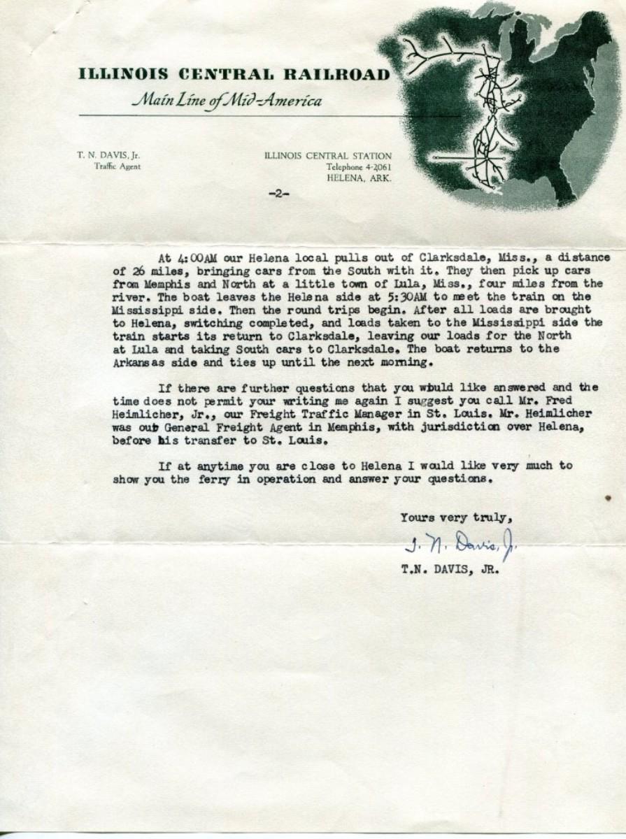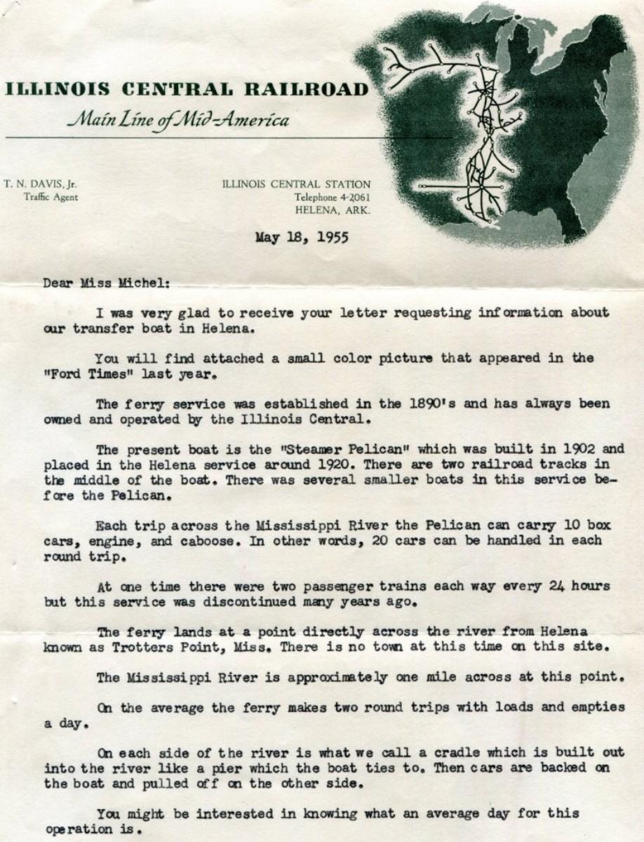 Railroad - Original 1955 10" X 8" Photo - Illinois Central RR Ferry at Helena, AR W/Provenance