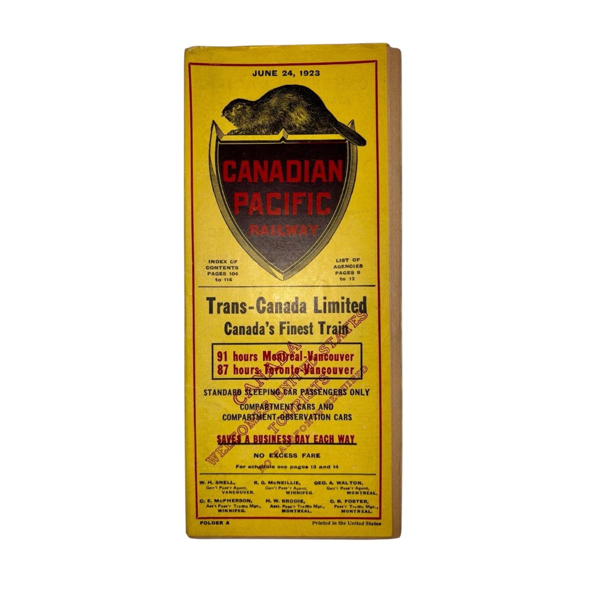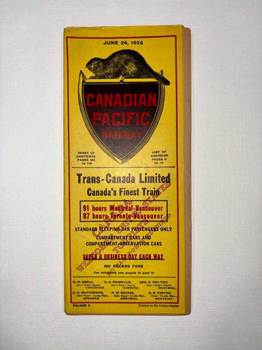 Railroad - 1923 Canadian Pacific Trans-Canada Ltd Time Table