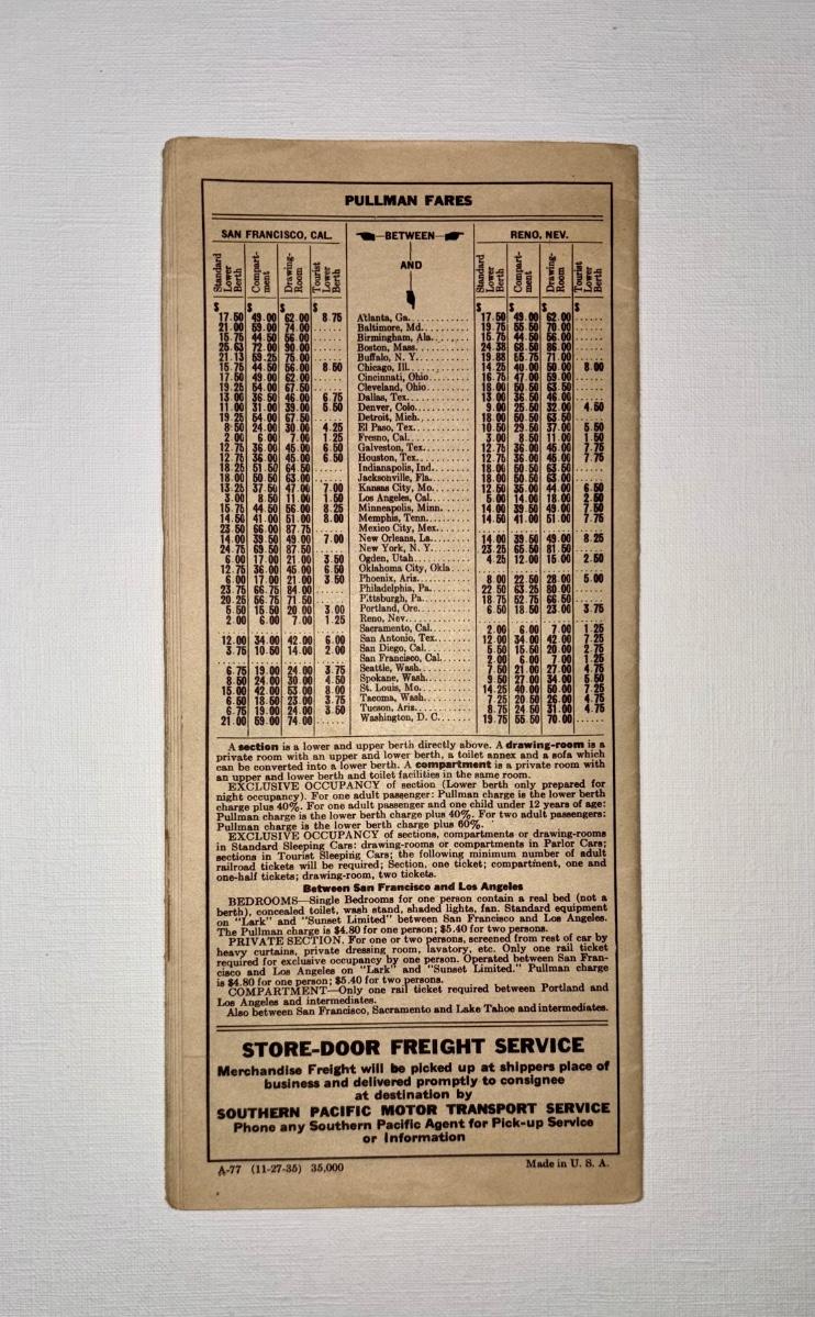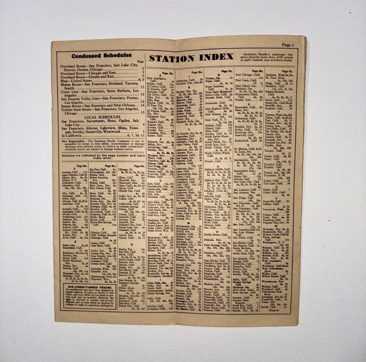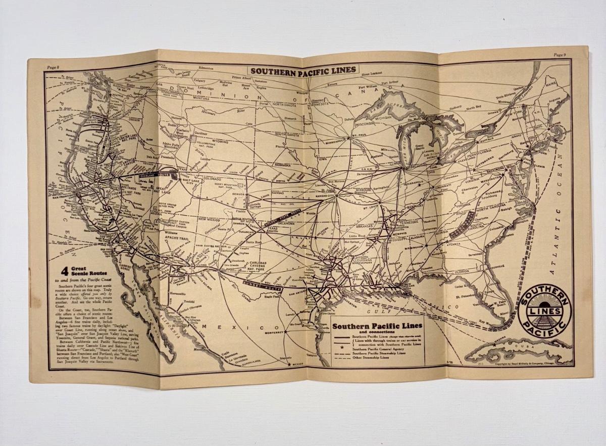 Railroad - Southern Pacific Overland Route Time Tables W/Map