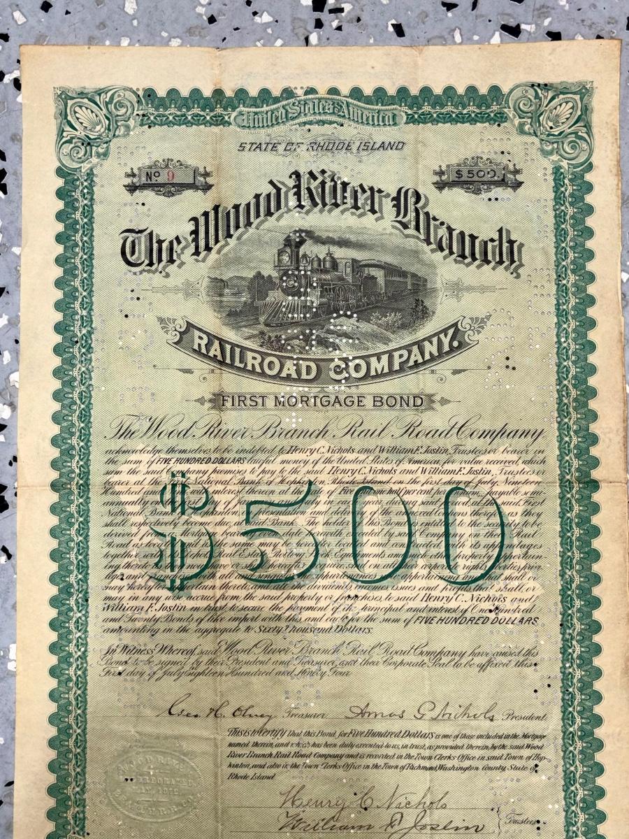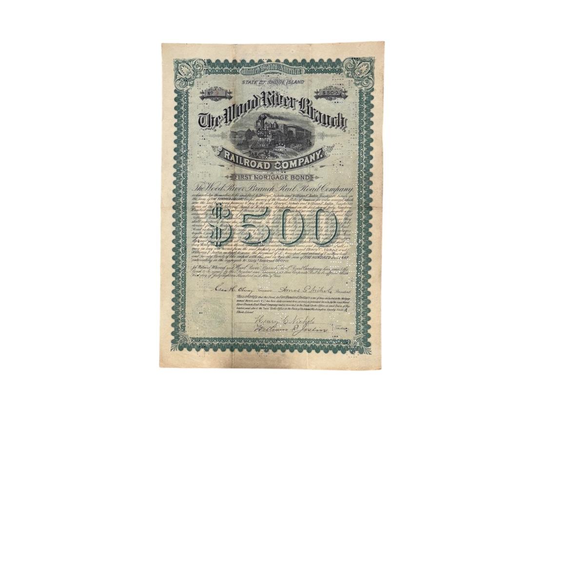 Railroad - $500 First Mortgage Bond, Wood River Branch RR, 1872