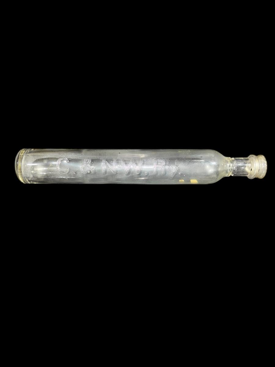 Railroad - Chicago & North Western C&NW Railroad Embossed Glass Fire Extinguisher, Empty