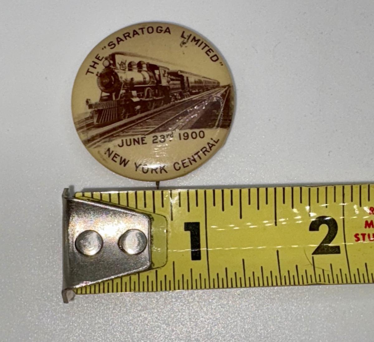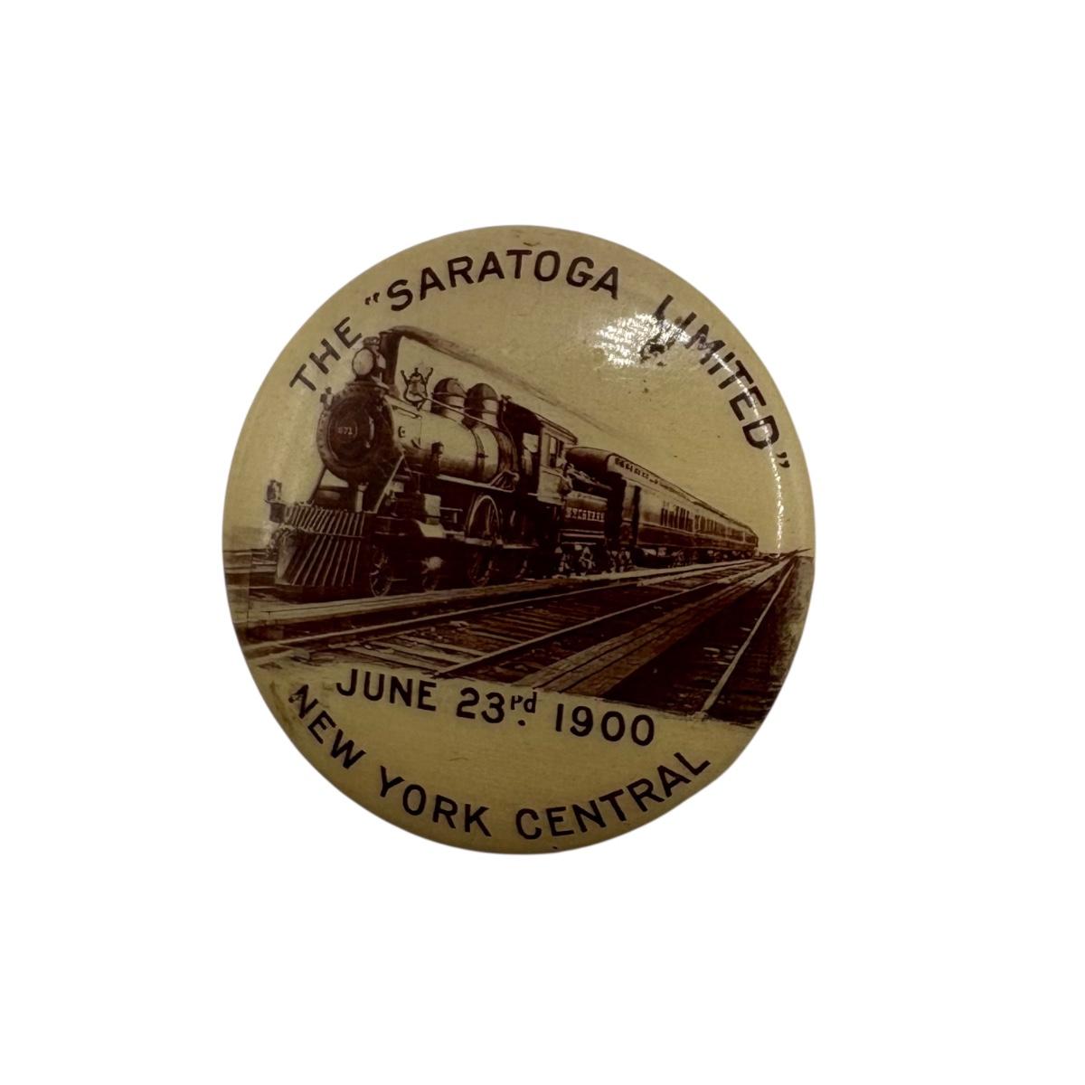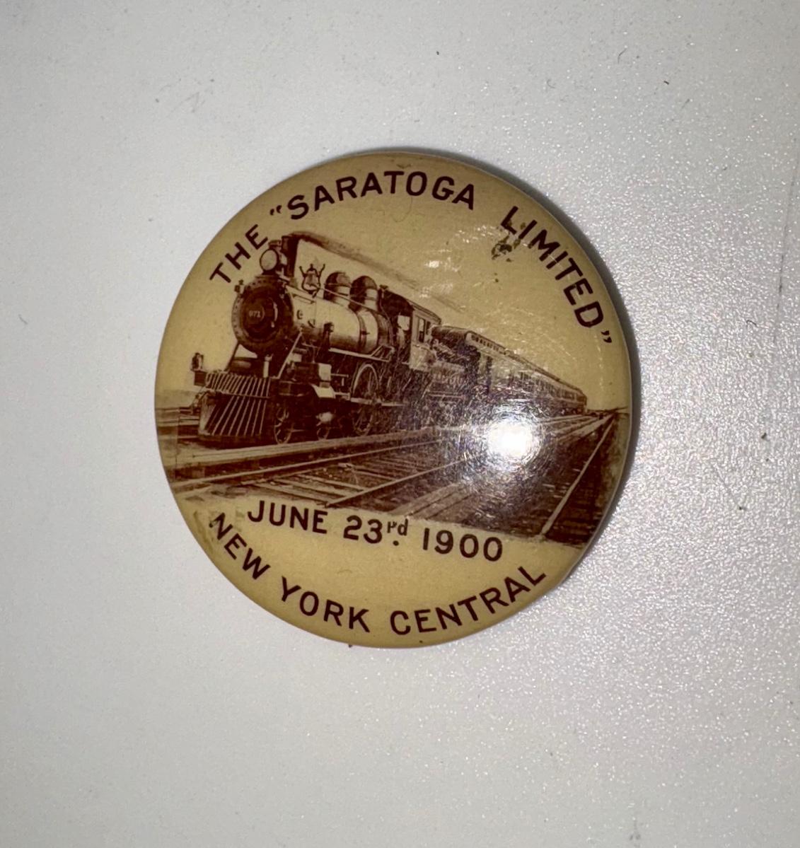 Railroad - 1900 Saratoga Limited Button/Pin, New York Central NYC Railway - 1.25" Diameter