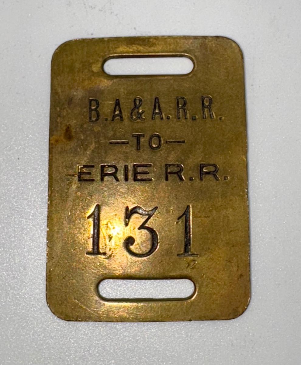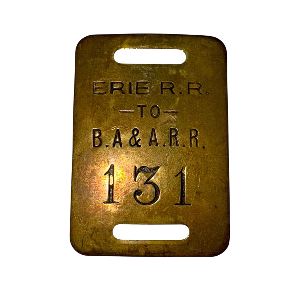 Railroad - Erie RR Belvidere, Addison & Allegany RR Brass Luggage Tag