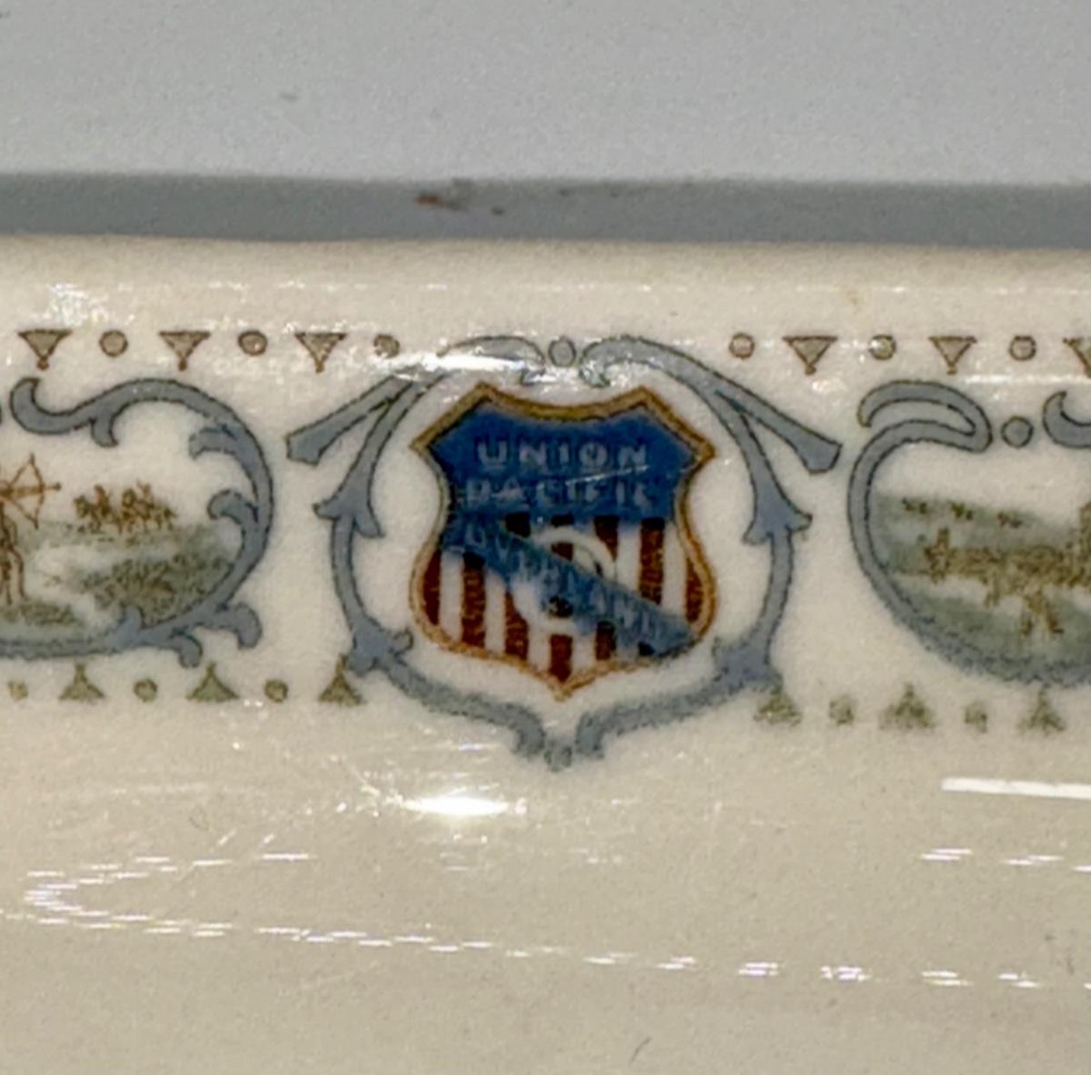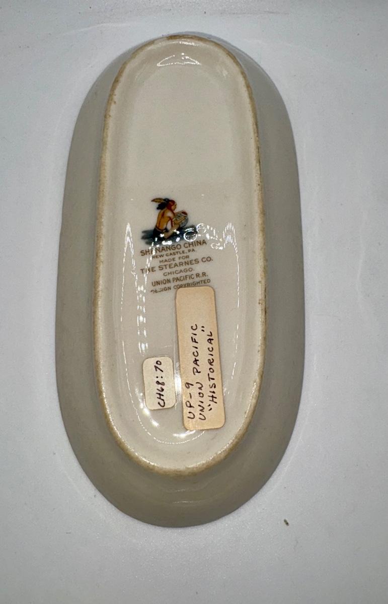 Railroad - Union Pacific Railroad UPRR “Historical” Butter Dish by Shenango China, Small Chip