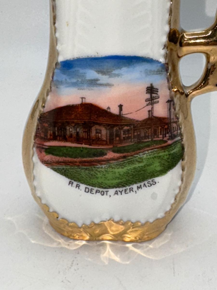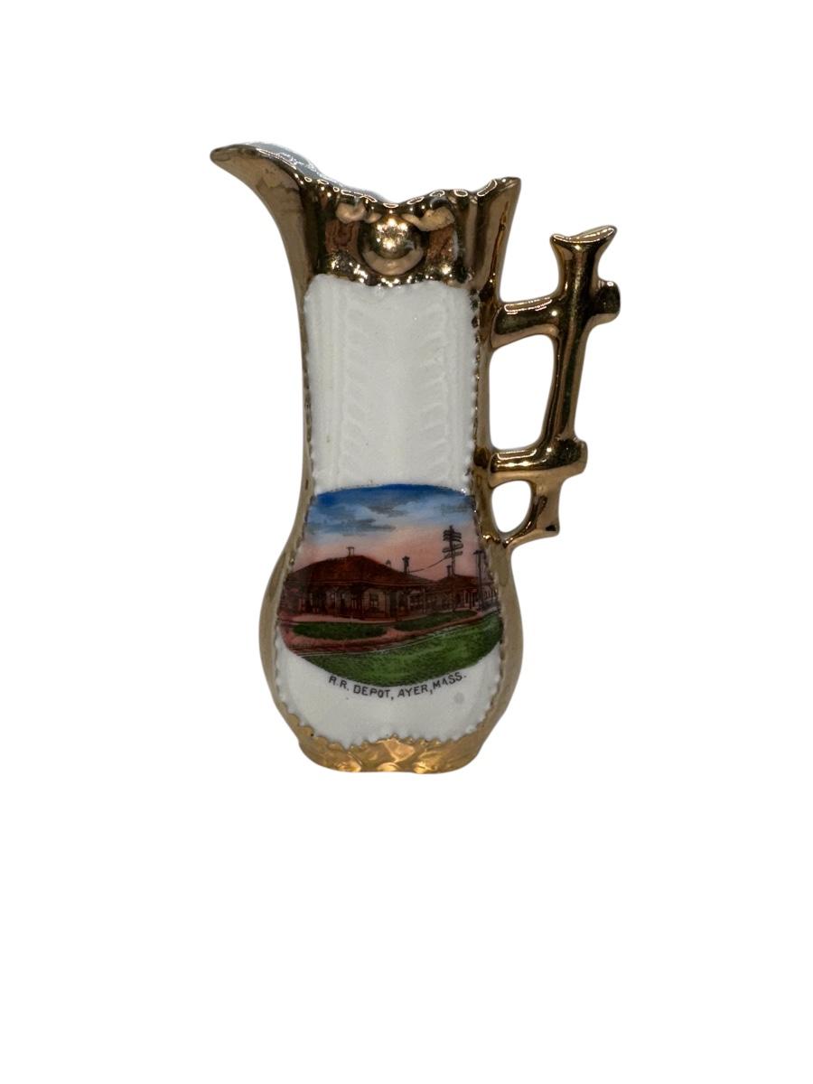 Railroad - Ca 1900 Souvenir Pitcher - Railroad Depot in Ayer, MA