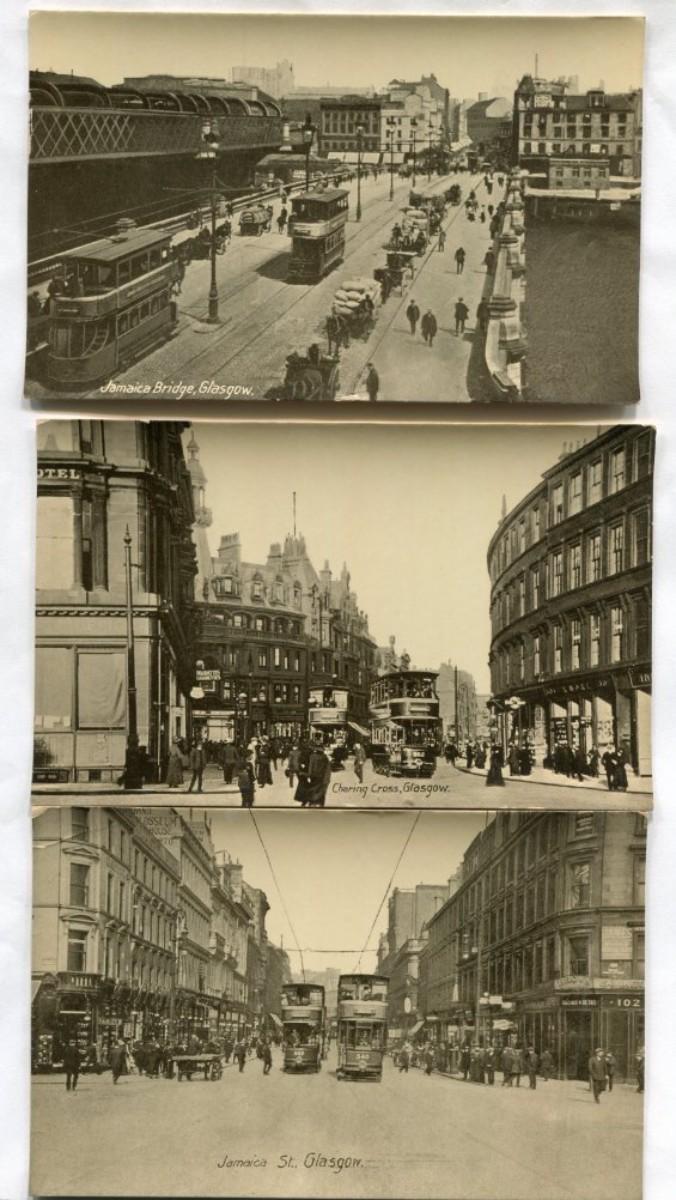 Railroad - Ca 1910 Lot of Three (3) Real Photo Postcards - Street Scenes W/Trollies in Glasgow, Scotland