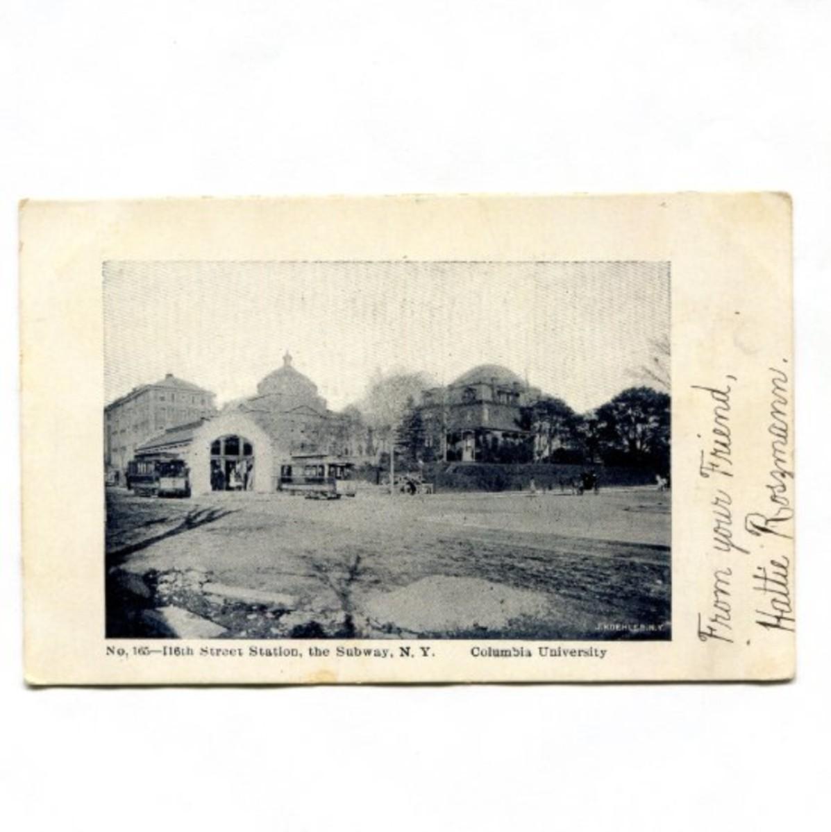 Railroad - 1945 Postcard, 116th Street Subway Station, Trollies, Columbia University