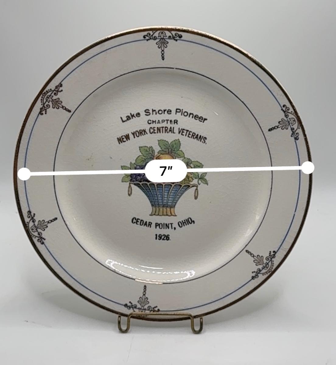 Railroad - 1926 Souvenir Plate, Lake Shore Chapter of NY Central RR Veterans- Cedar Point, OH