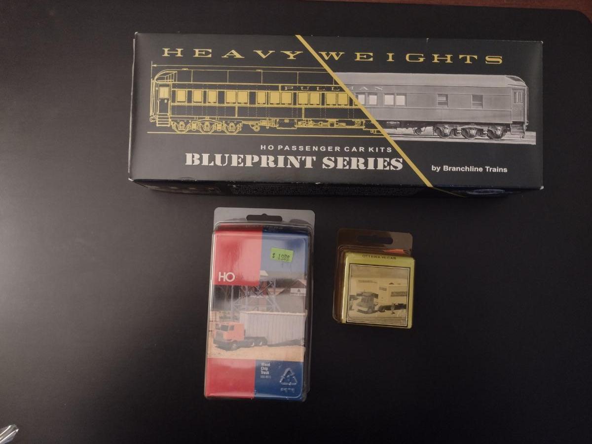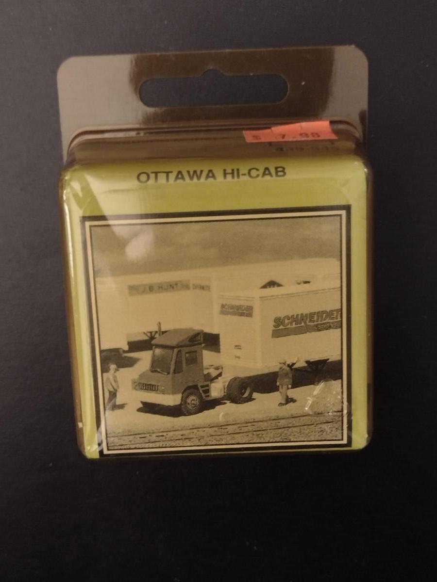 Railroad Car and Truck Model Kits. HO Single Window Coach 5125 Seaboard, Ottawa Hi-Cab Yard Tractor, Walthers Wood Chip Truck. Items appear to be new in packages, but may have missing pieces.
