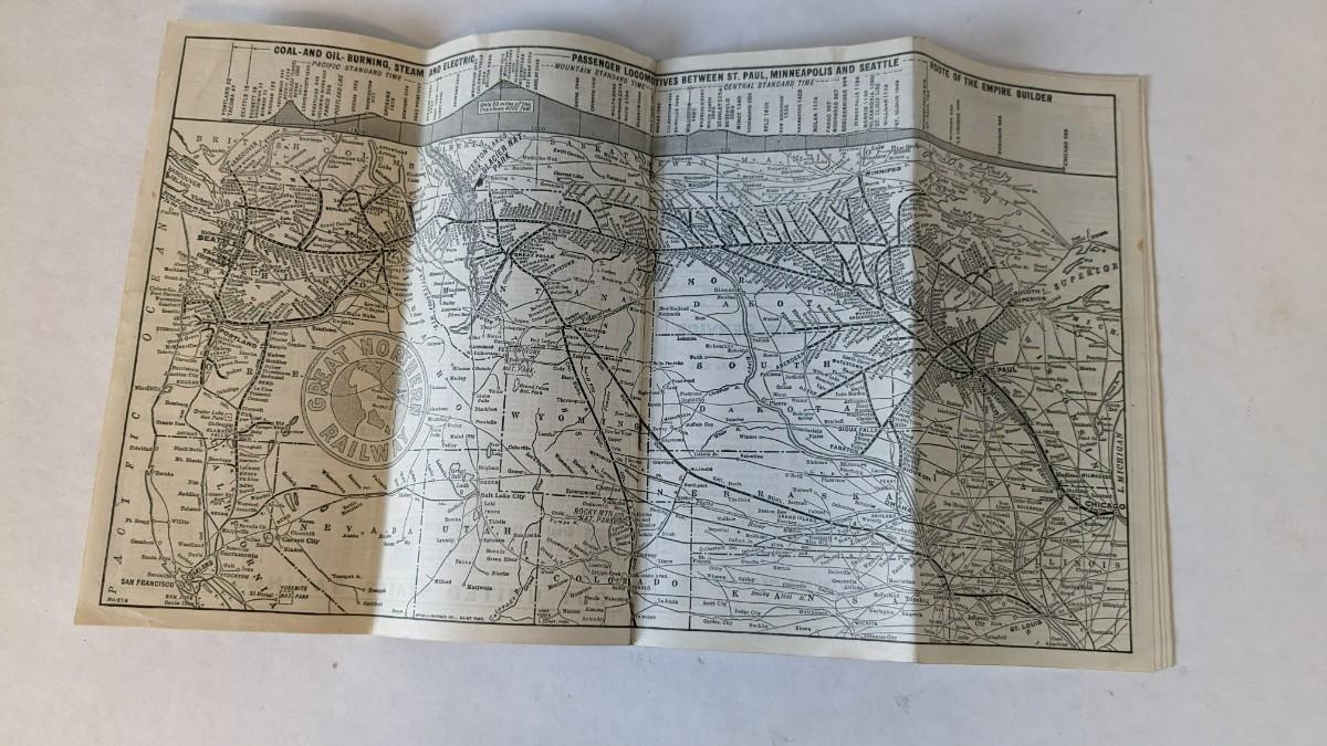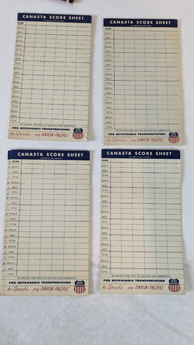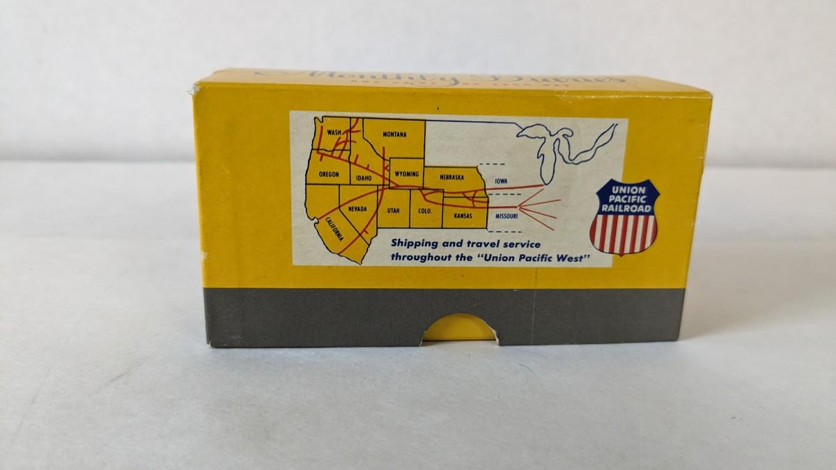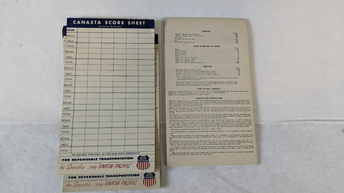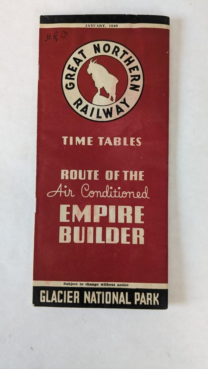1946 Great Northern Railway Time Tables and map booklet in great condition, a scenic Northwest publication also from Great Northern that shows separation of back and front covers but inside is in good shape. Union Pacific unopened matchbooks, Union Pacific Canasta score cards, Santa Fe notepad with calendar in cover from 1955. Union Pacific Monthly Diaries from 1960 in original cardboard box and in fantastic condition. Finally, a hollow cast 6 1/8" Burlington Silver Dome replica that shows patina. All in all a fantastic collection for any railroad enthusiast and collector!