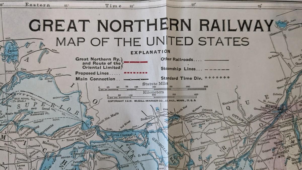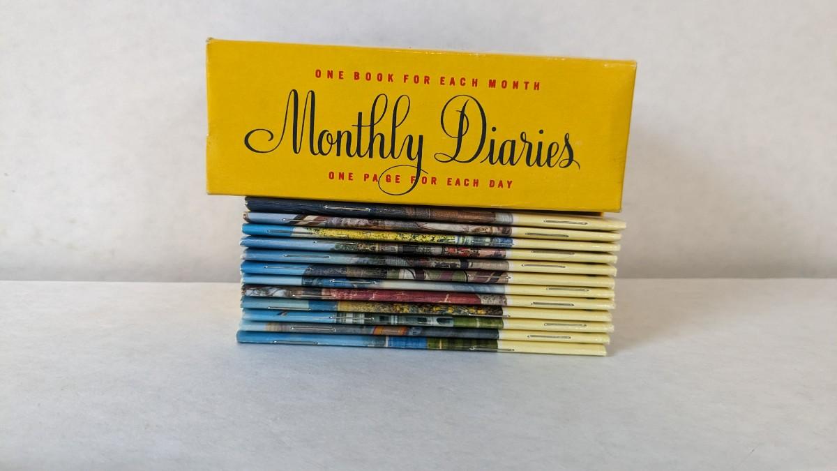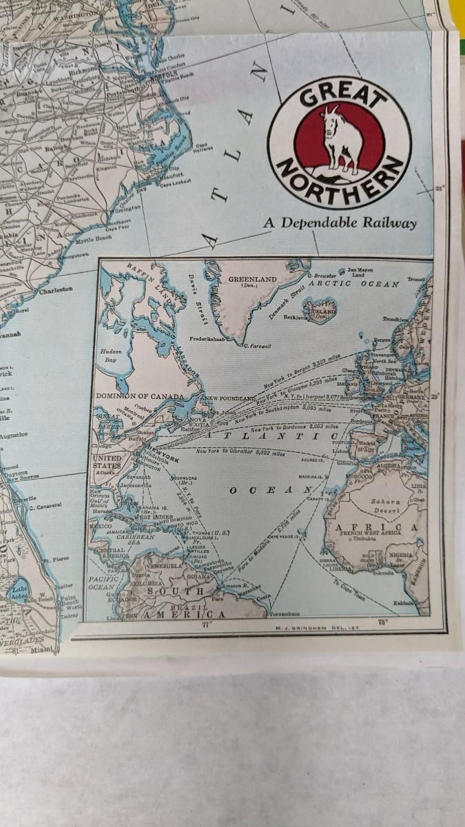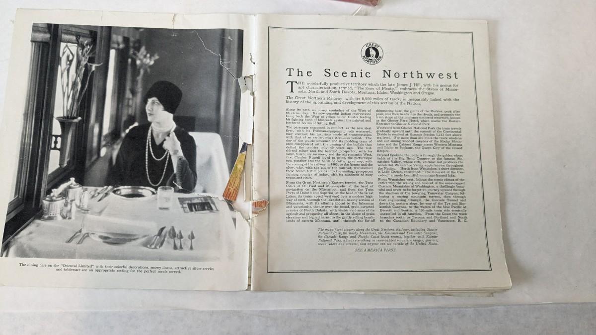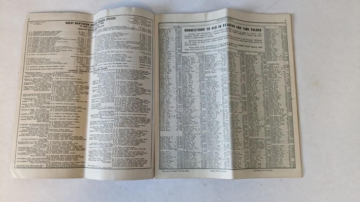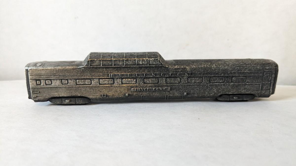 1946 Great Northern Railway Time Tables and map booklet in great condition, a scenic Northwest publication also from Great Northern that shows separation of back and front covers but inside is in good shape. Union Pacific unopened matchbooks, Union Pacific Canasta score cards, Santa Fe notepad with calendar in cover from 1955. Union Pacific Monthly Diaries from 1960 in original cardboard box and in fantastic condition. Finally, a hollow cast 6 1/8" Burlington Silver Dome replica that shows patina. All in all a fantastic collection for any railroad enthusiast and collector!