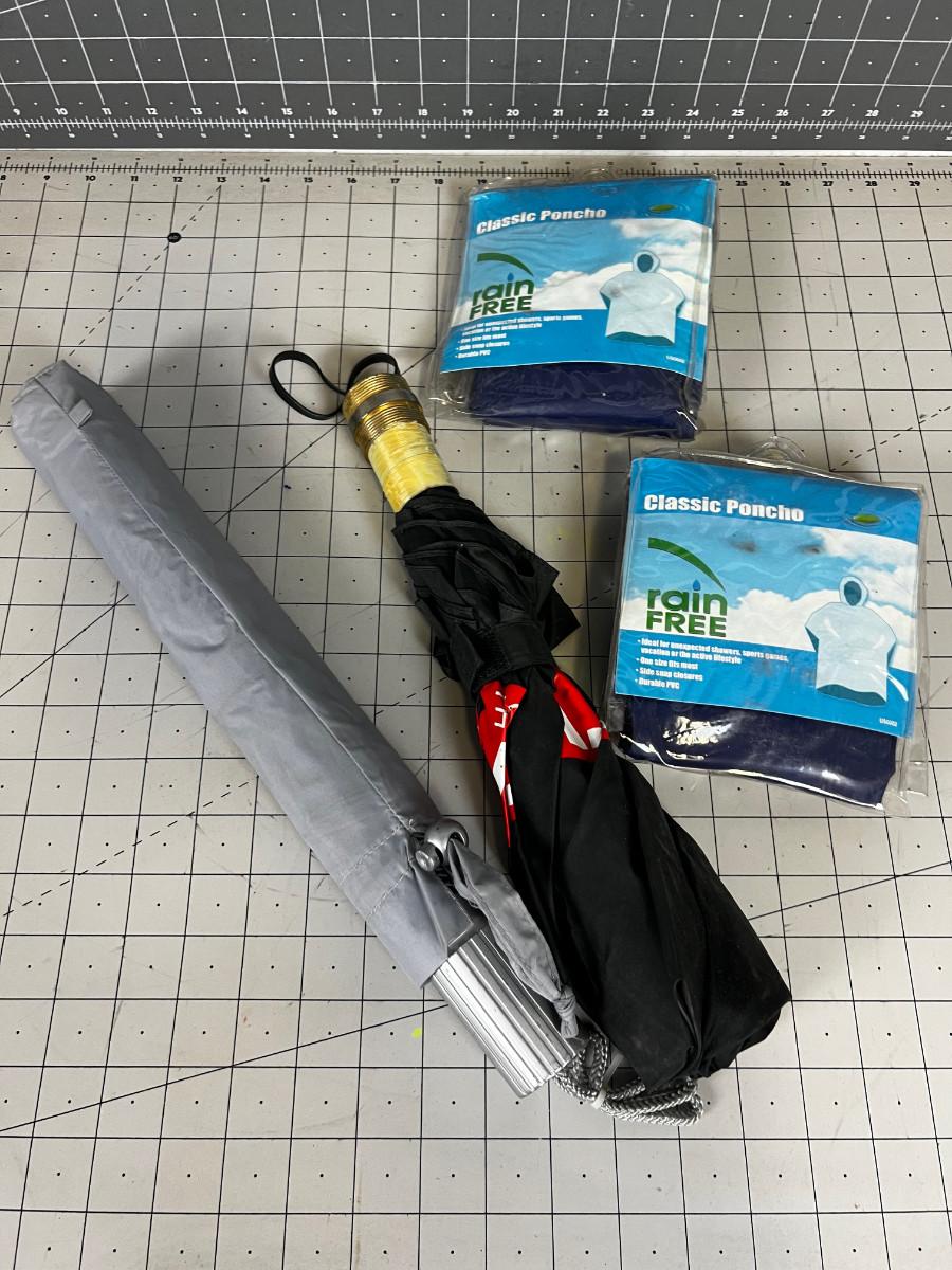 RAIN Gear: 2 Ponchos and 2 Umbrellas