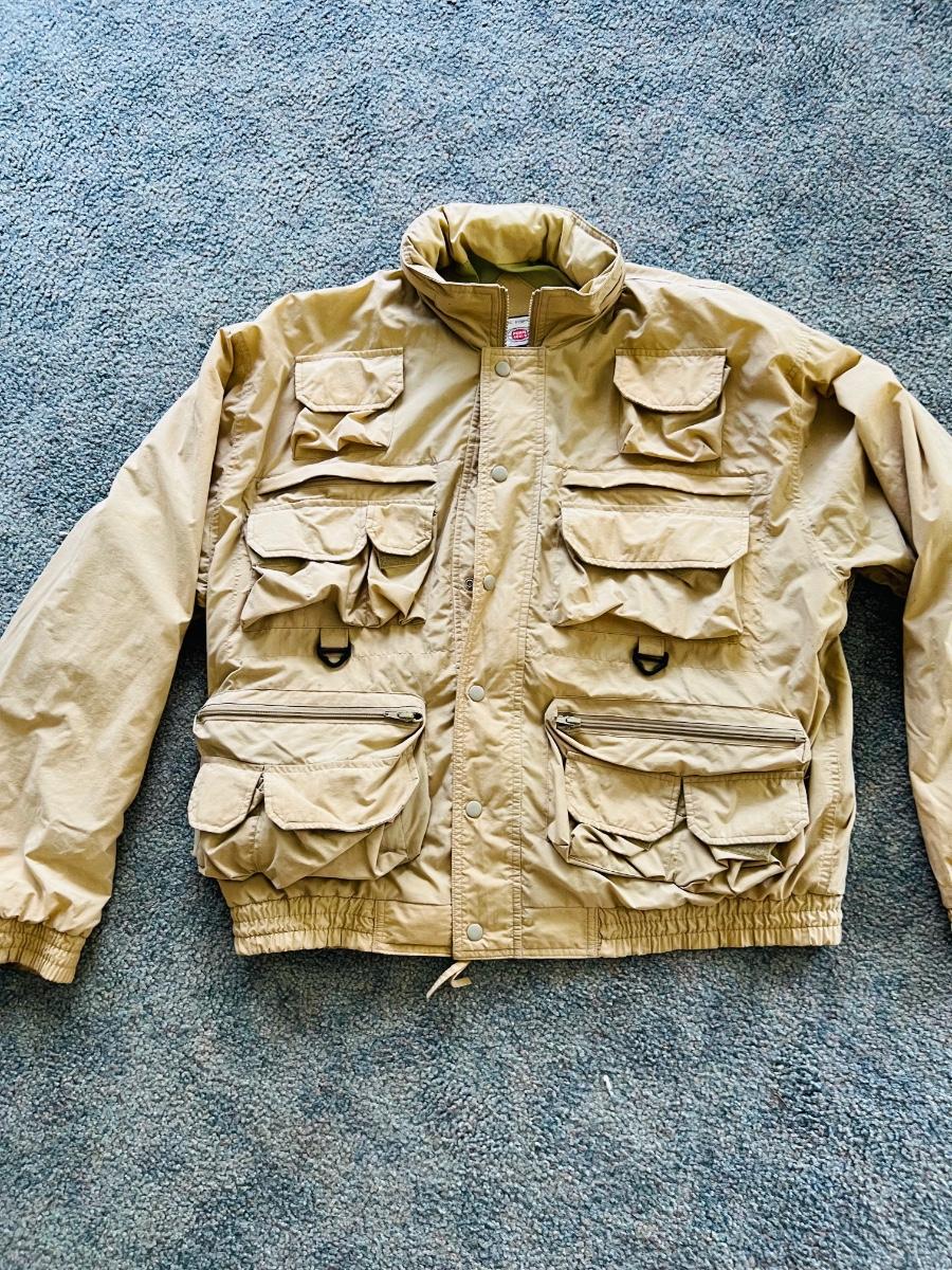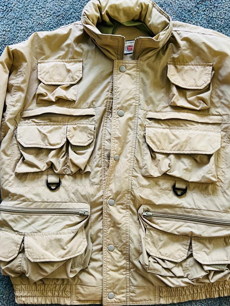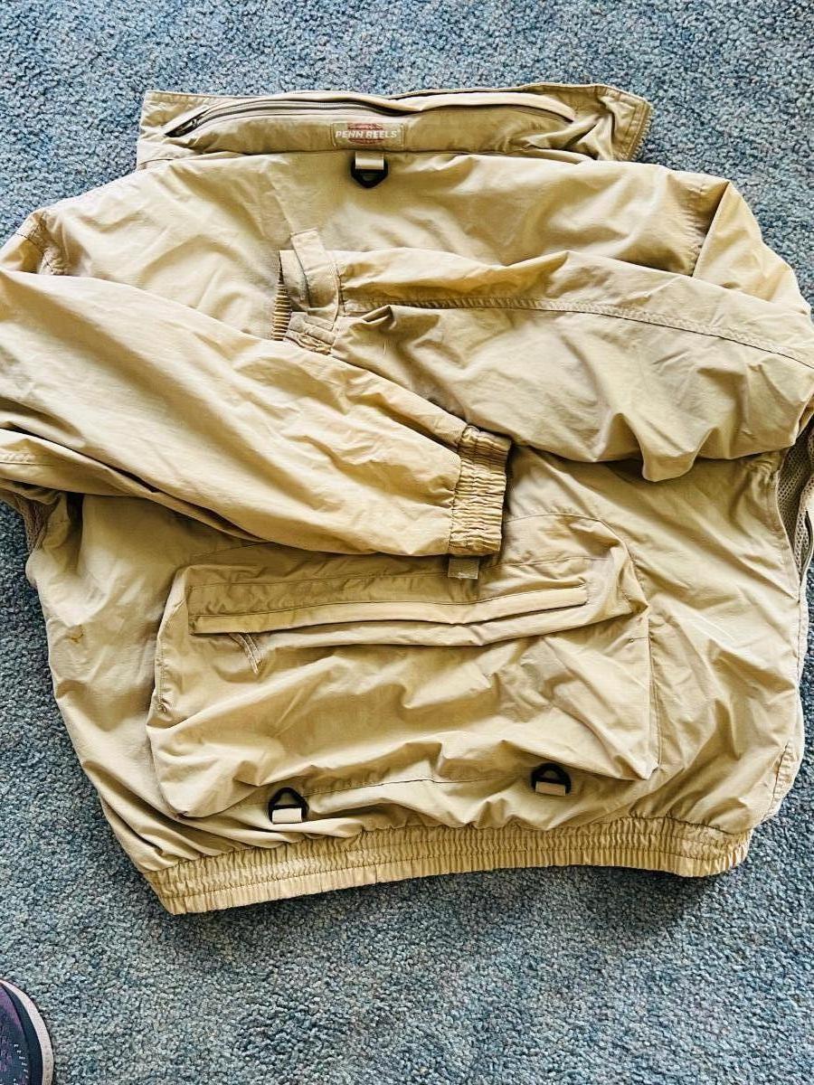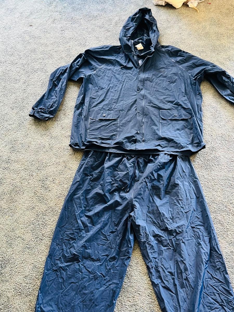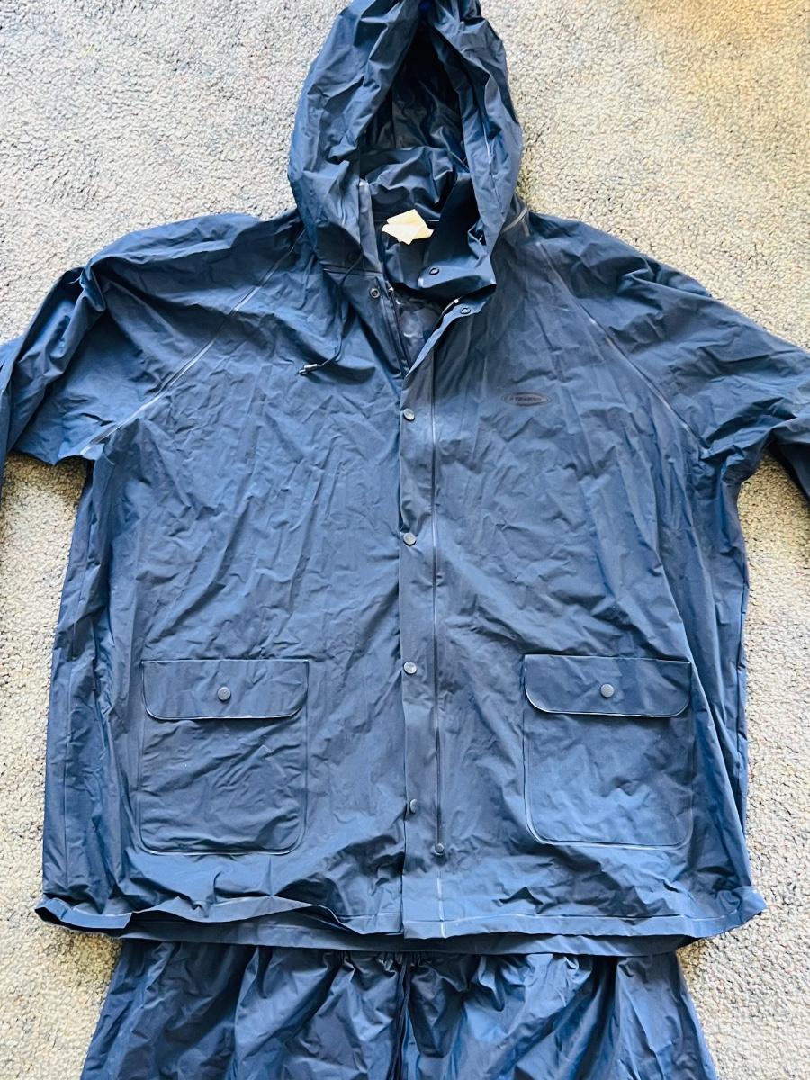 This lot includes a navy blue Stearns waterproof jacket and matching pants, and Penn Reels Fishing Jacket.