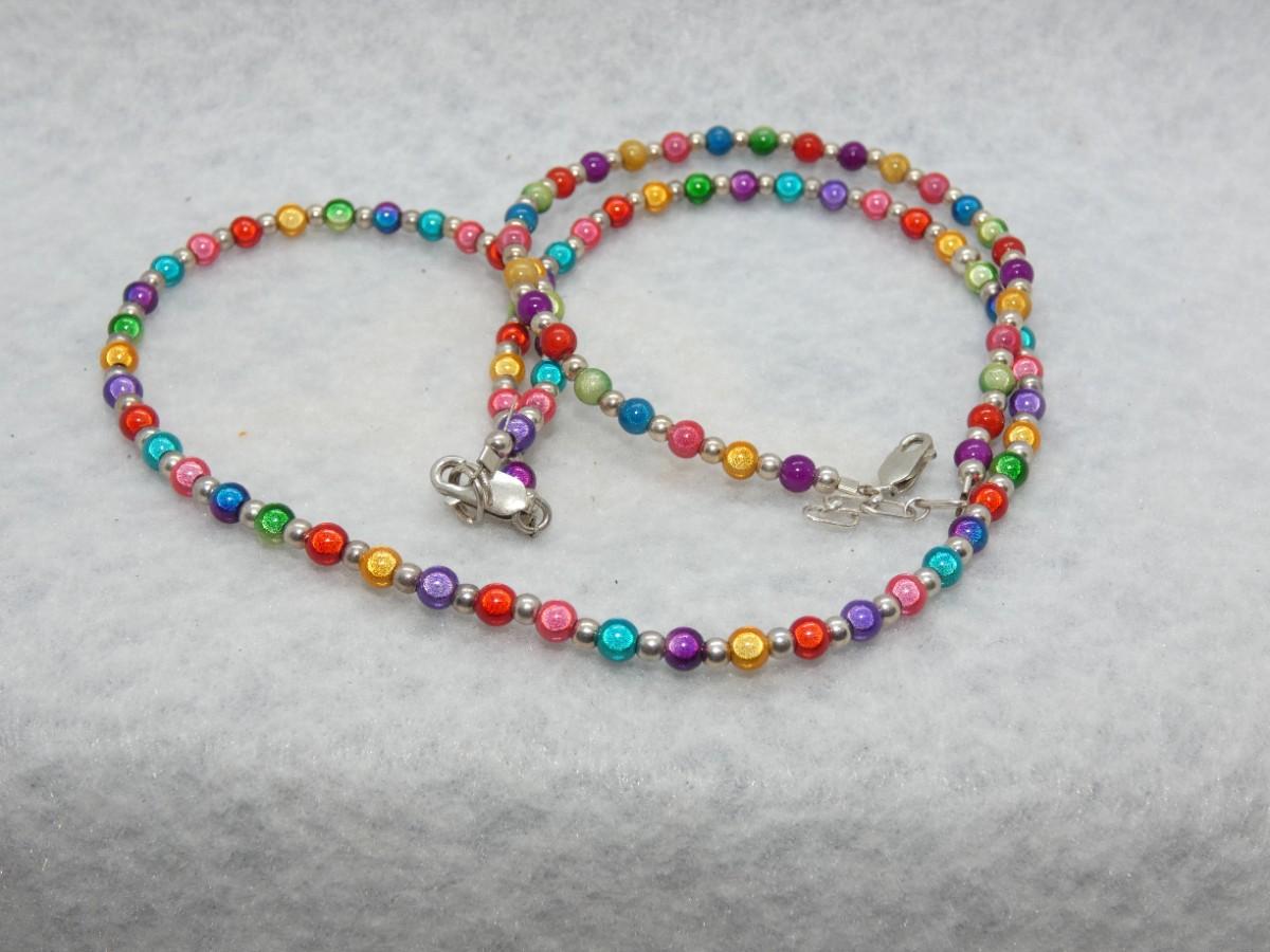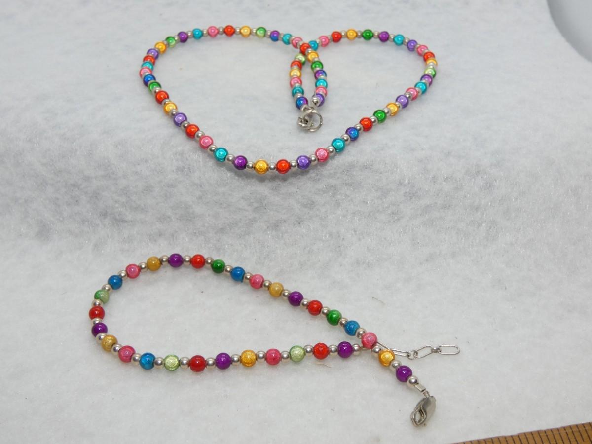 Rainbow Beaded Necklace & Bracelet Set - Handmade