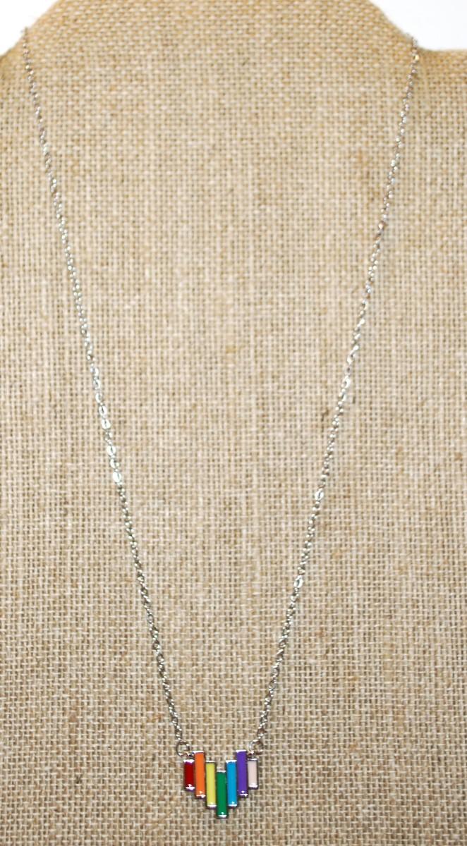 Rainbow Colored Double Hooked PENDANT (¾" x ¾") on a Silver Tone Necklace Chain 18" L