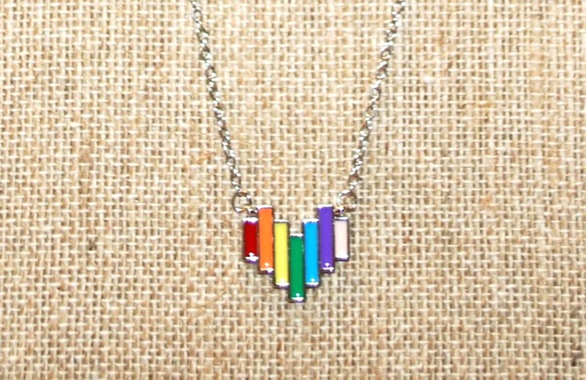 Rainbow Colored Double Hooked PENDANT (¾" x ¾") on a Silver Tone Necklace Chain 18" L