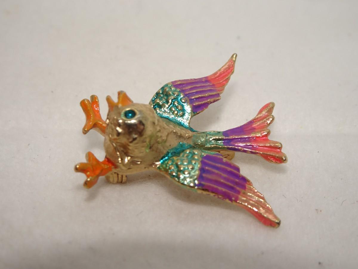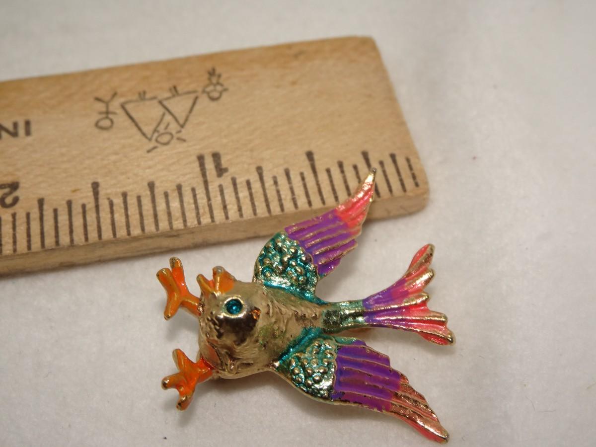 Rainbow Gold Tone Birdie Pin, Swallow Bird