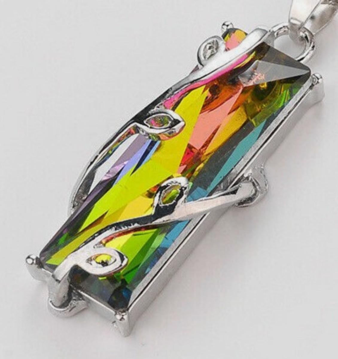 Rainbow Irridescent Long Rectangle PENDANT (1 ½ x ½) Necklace 19"