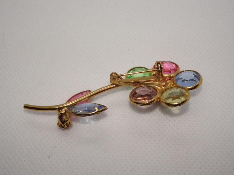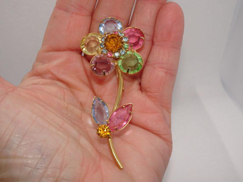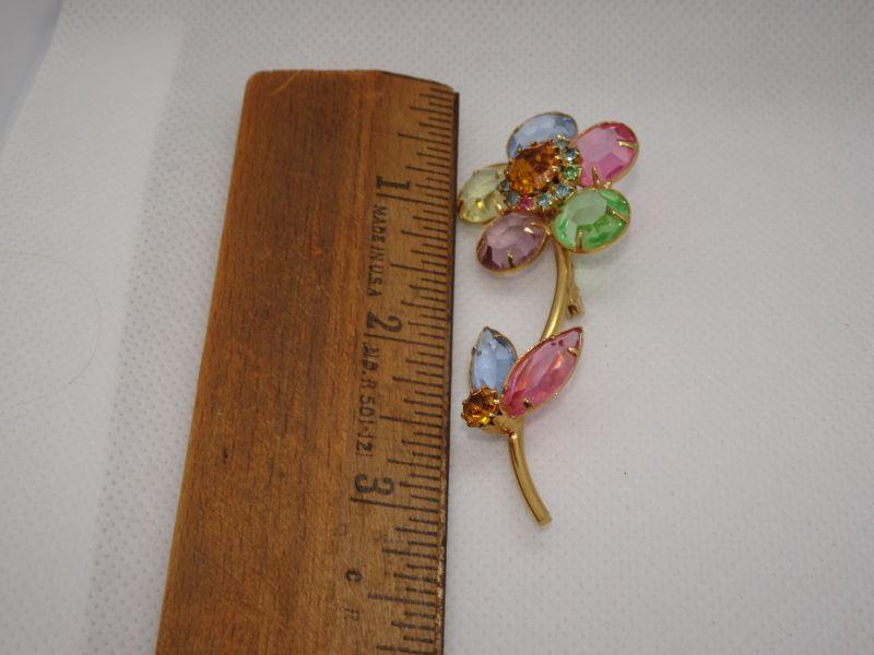 Rainbow Rhinestone Colored Flower Brooch, Statement Jewelry