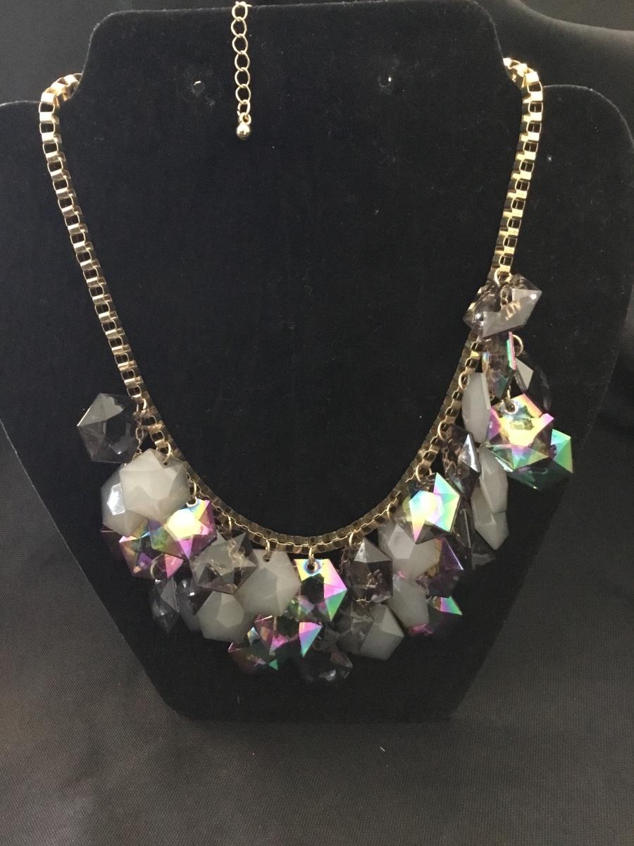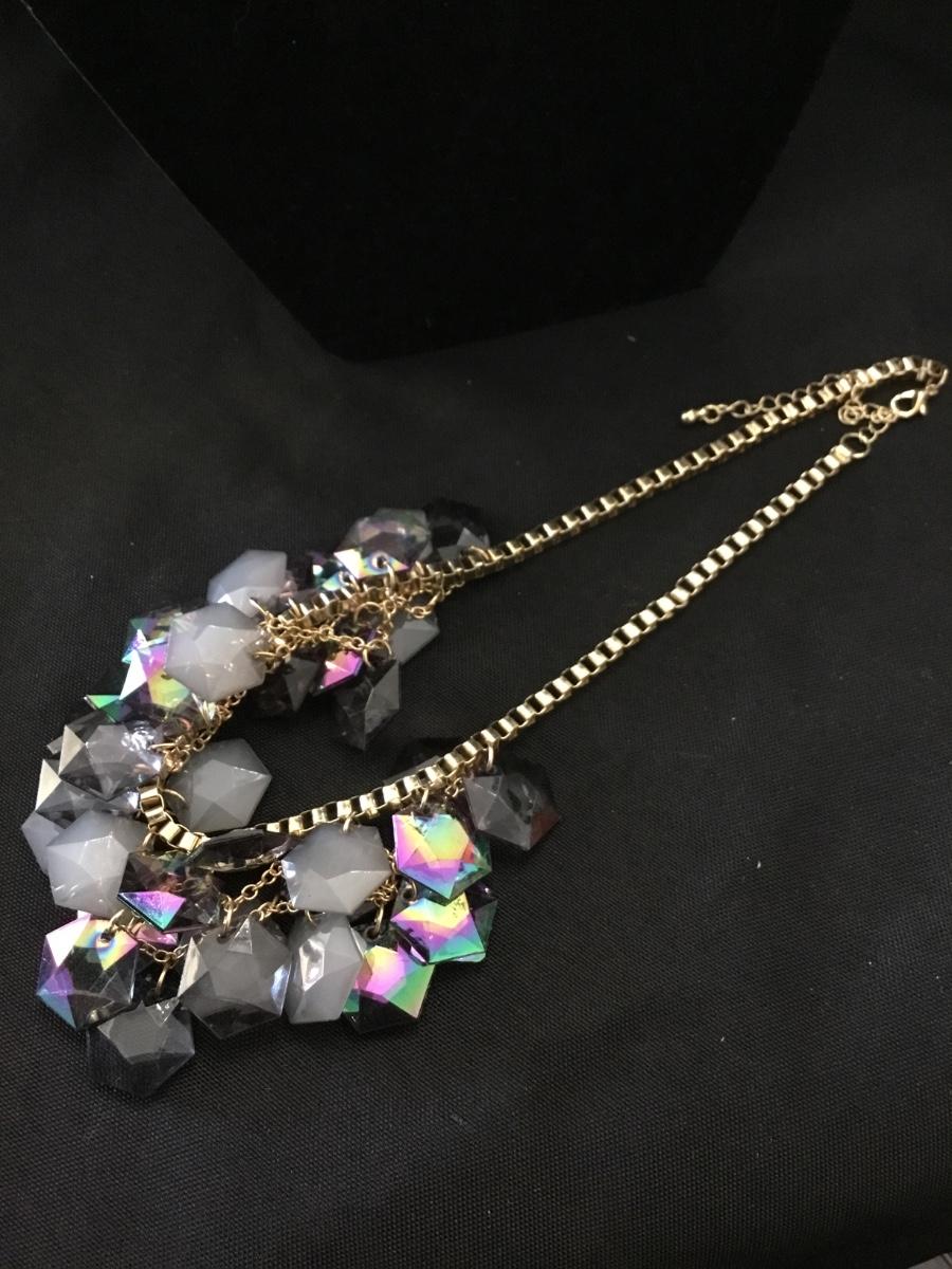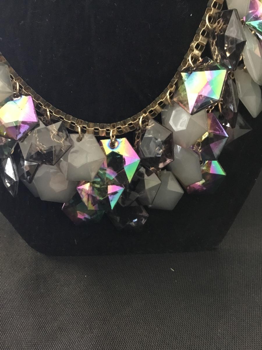 Rainbow rhinestone fashion statement gold tone necklace