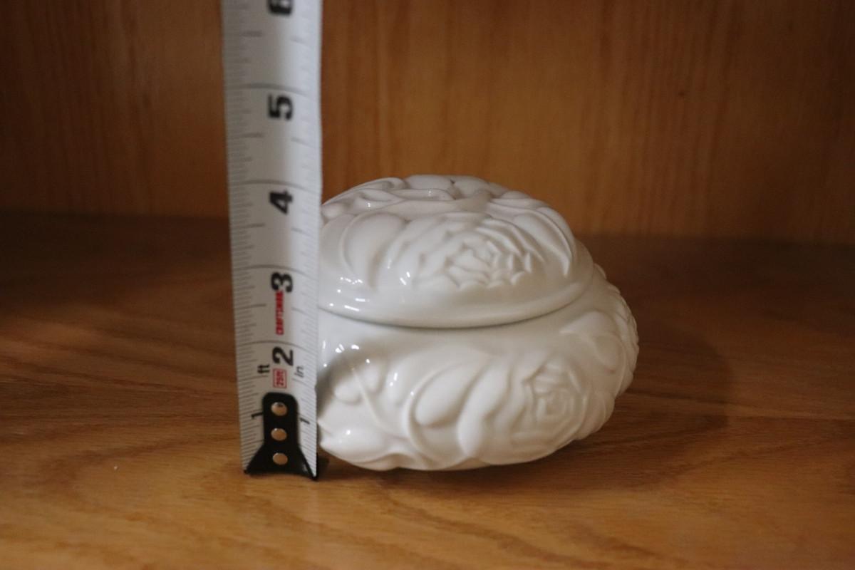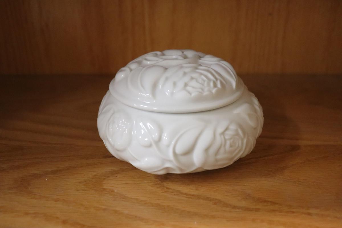 Raised Roses VANITY BOX Jar White Porcelain Germaine Monteil 5.5"