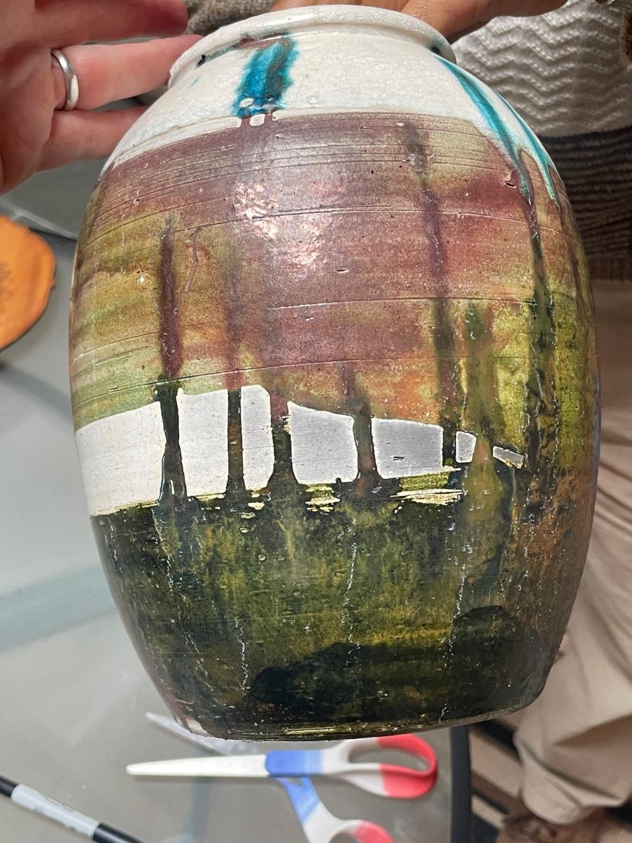 RAKU GLAZED VASE w/ BLUE DRIPS
