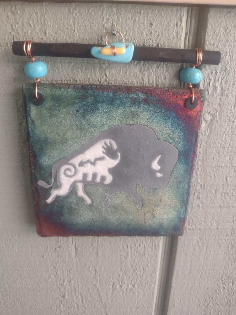 Raku Pottery Works Tile Buffalo Spirit Art