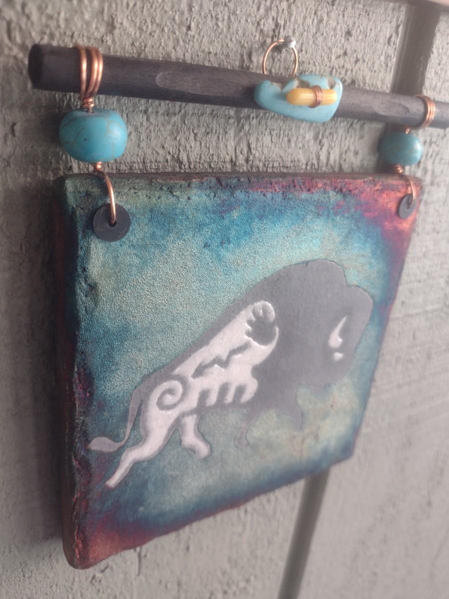Raku Pottery Works Tile Buffalo Spirit Art small wall art. See measurements.