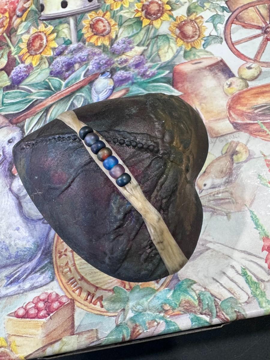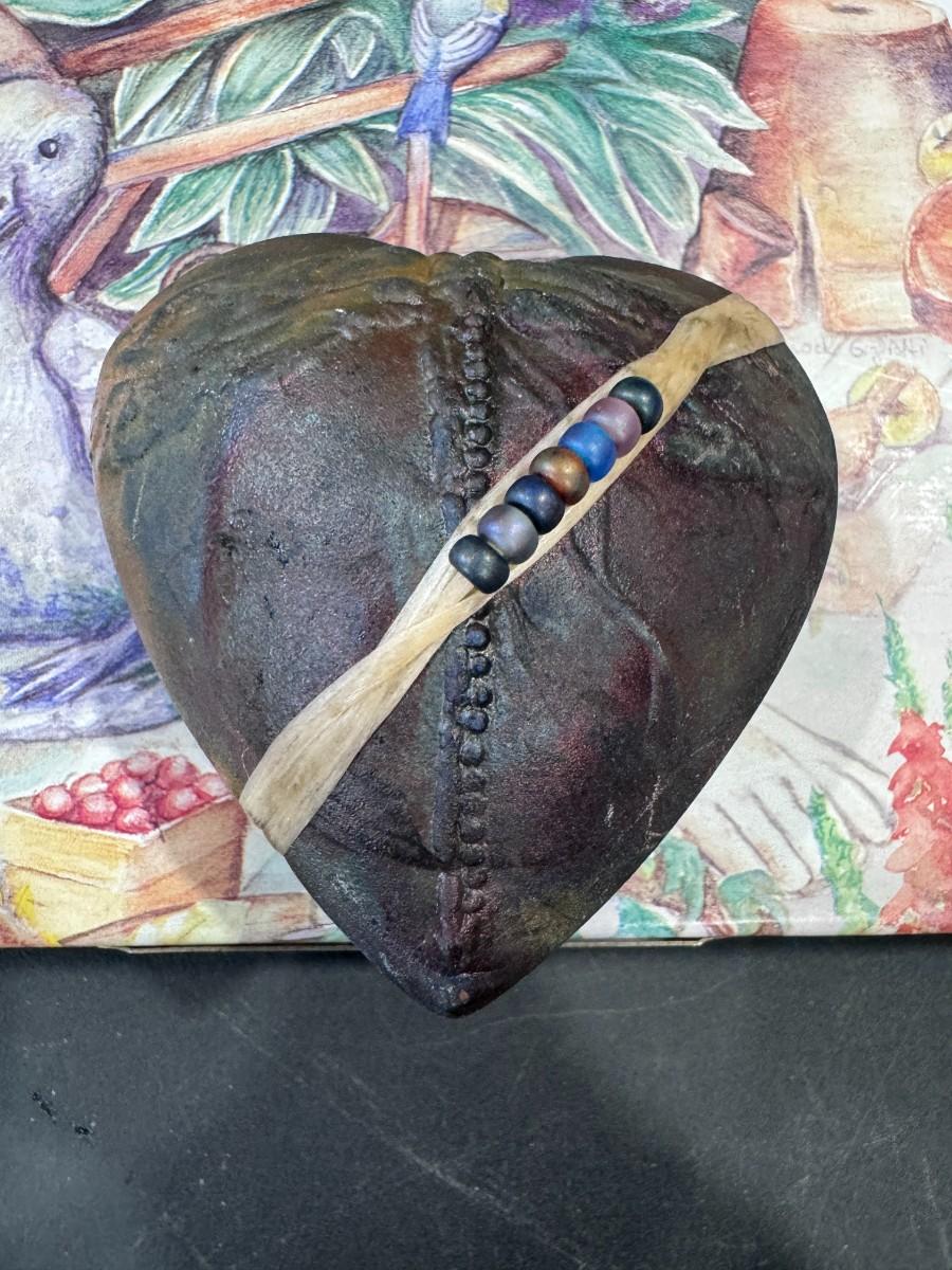 Raku Pottery: The heart is made using the Raku firing technique, a Japanese pottery method where pieces are removed from the kiln while hot and placed in a reduction chamber, creating unique and unpredictable colors and surfaces.