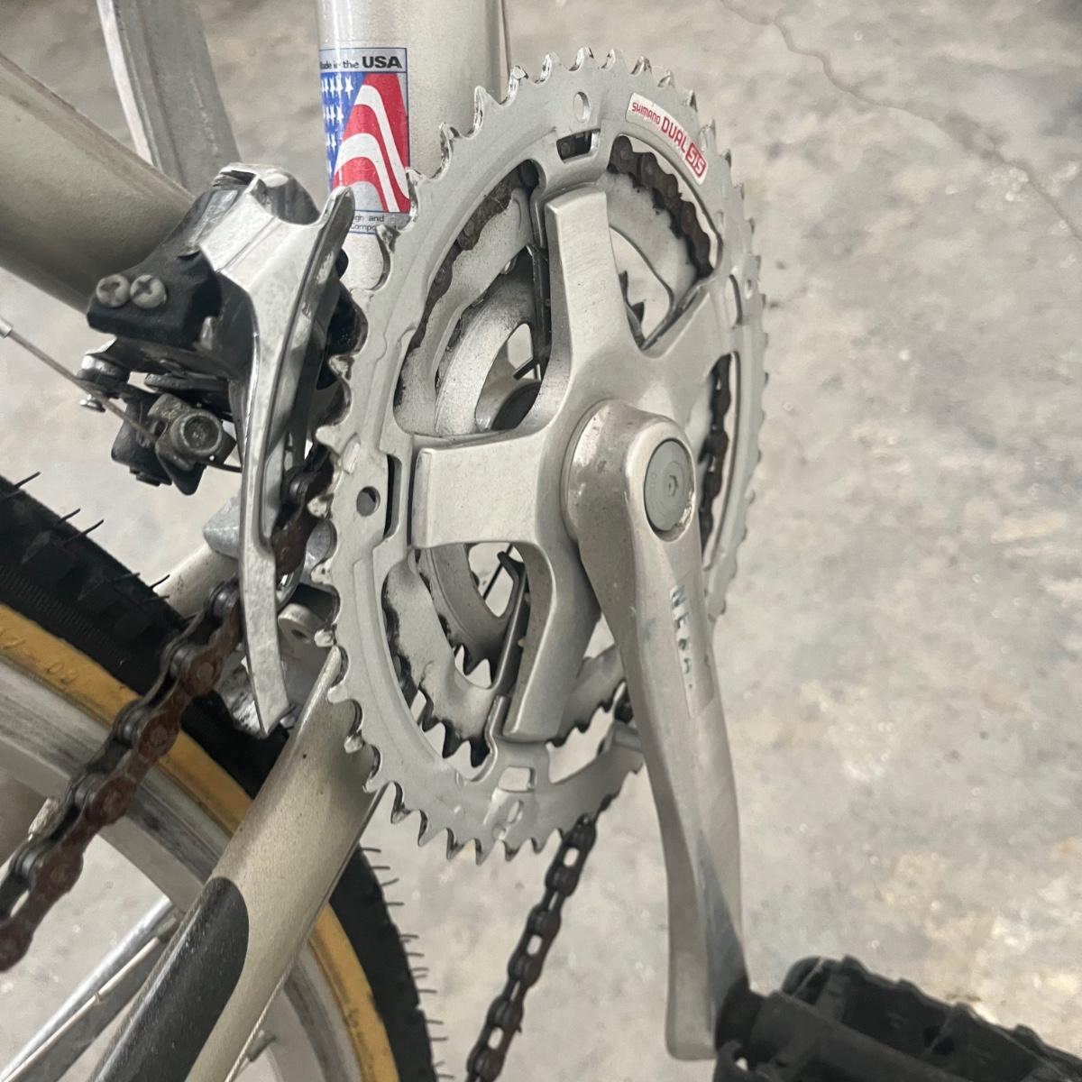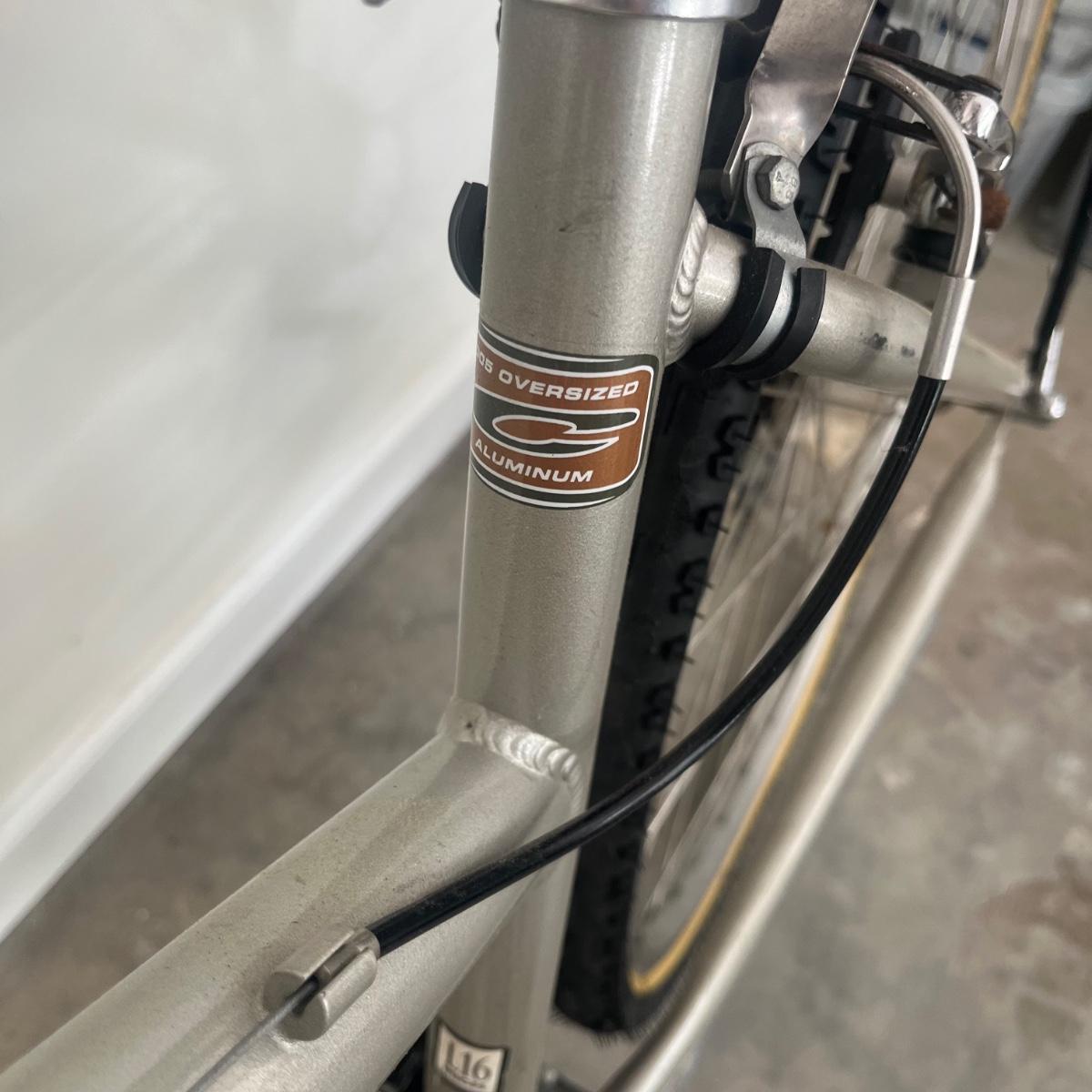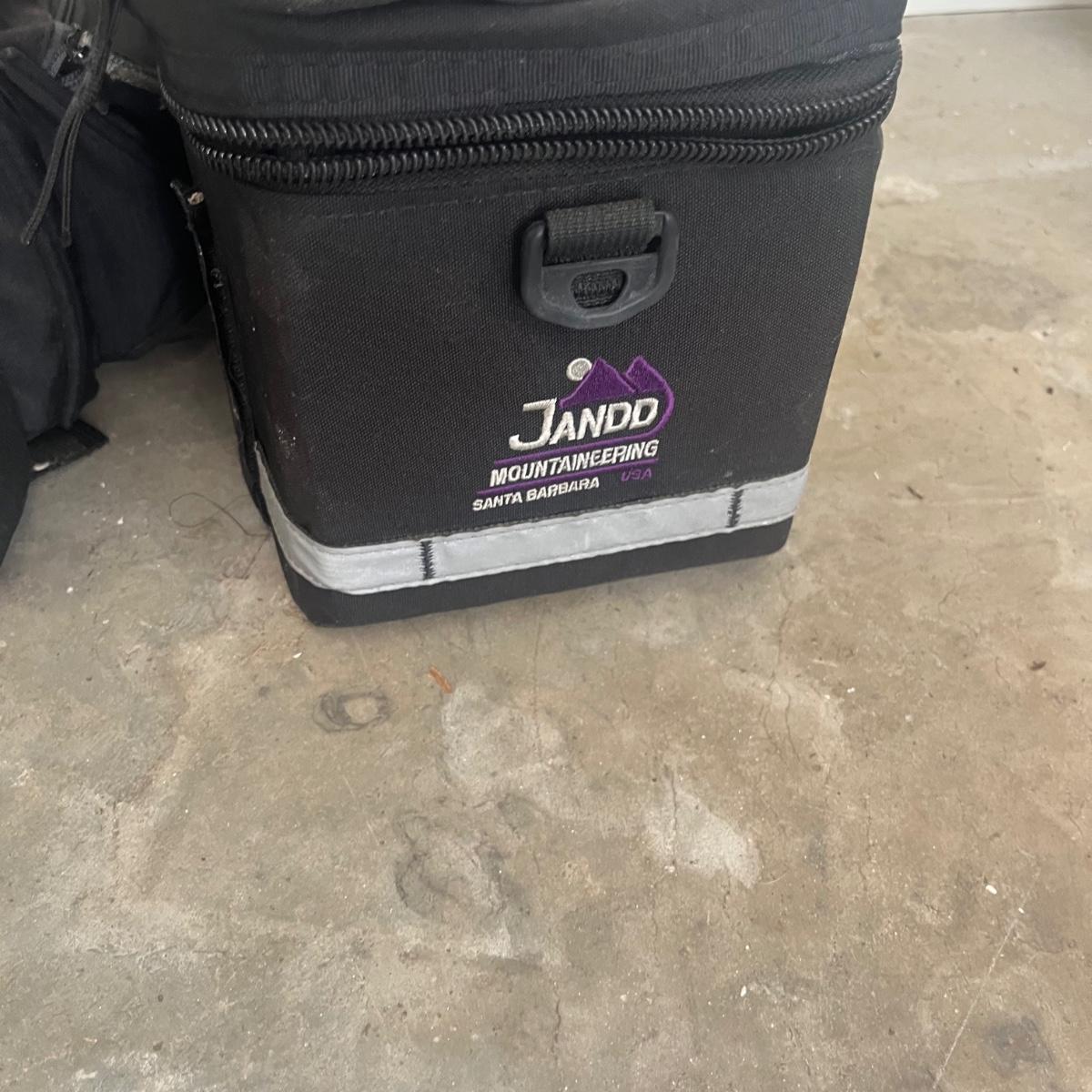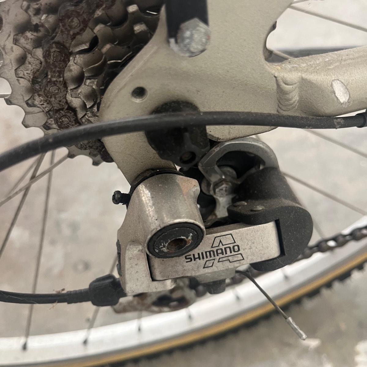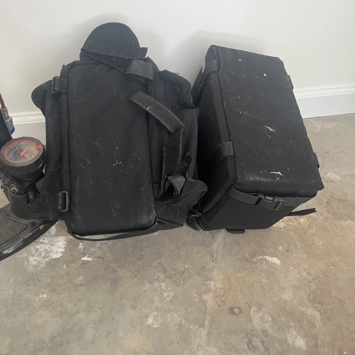 Lot includes a Raleigh C40 hybrid 21 speed bicycle with Shimano gears , Tektro brakes, bell, rack and quick release wheels. Also includes Giant pump two bicycle helmets and a Blackburn and Jandd rack bag. Down tube measures 22”.