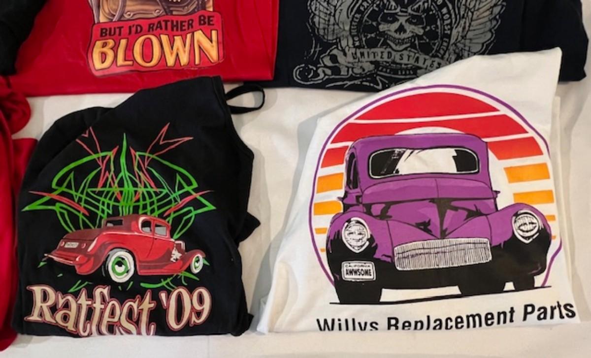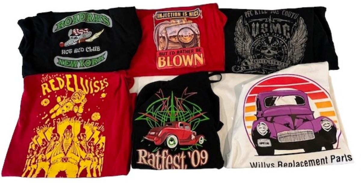 Car clubs and more. Road Rats, Willie's Replacement Parts, and more. Total of 6 pieces. Mixed men's and women's sizes.