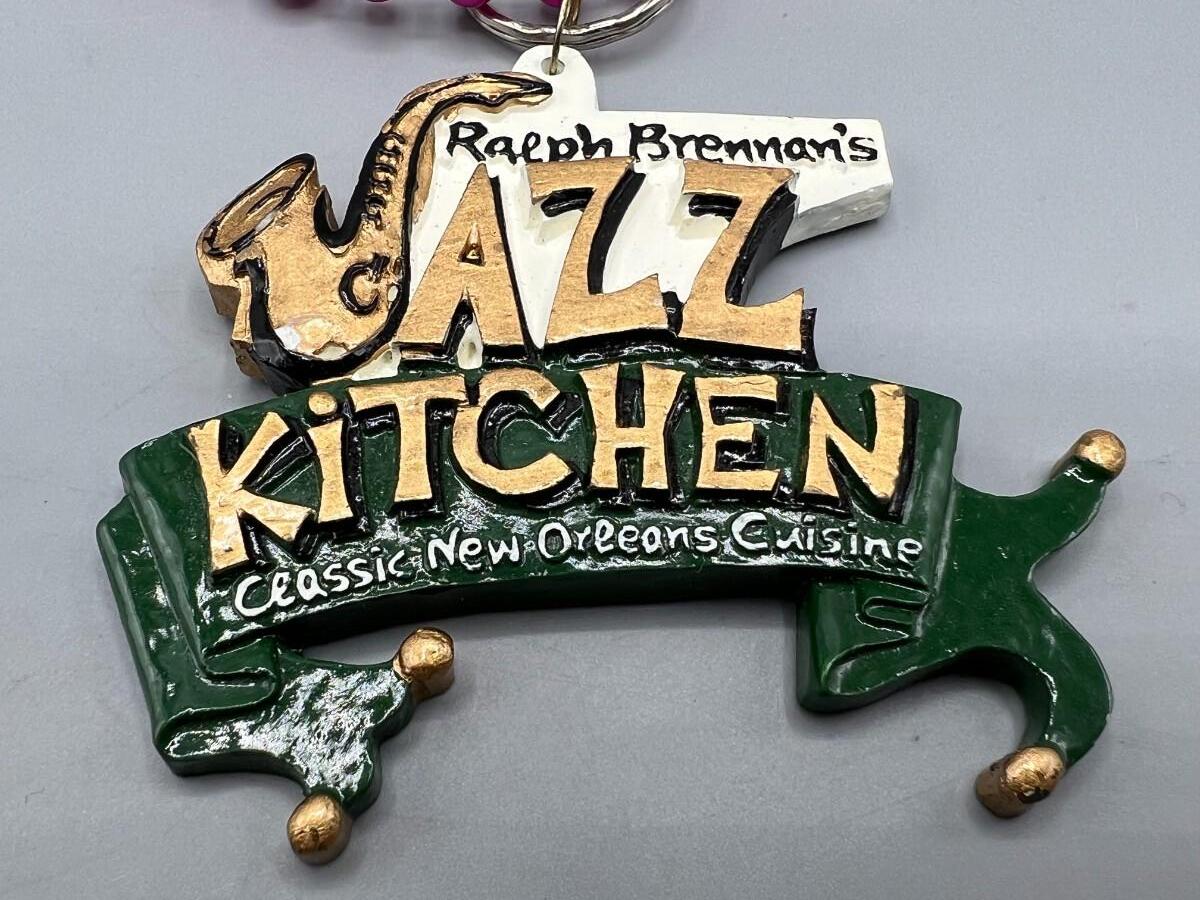 Ralph Brennan's Jazz Kitchen Bead Necklace with Wood Logo Pendant, there is no significant damage to the necklace and is in good condition. Check pictures for more details and for sizing.
