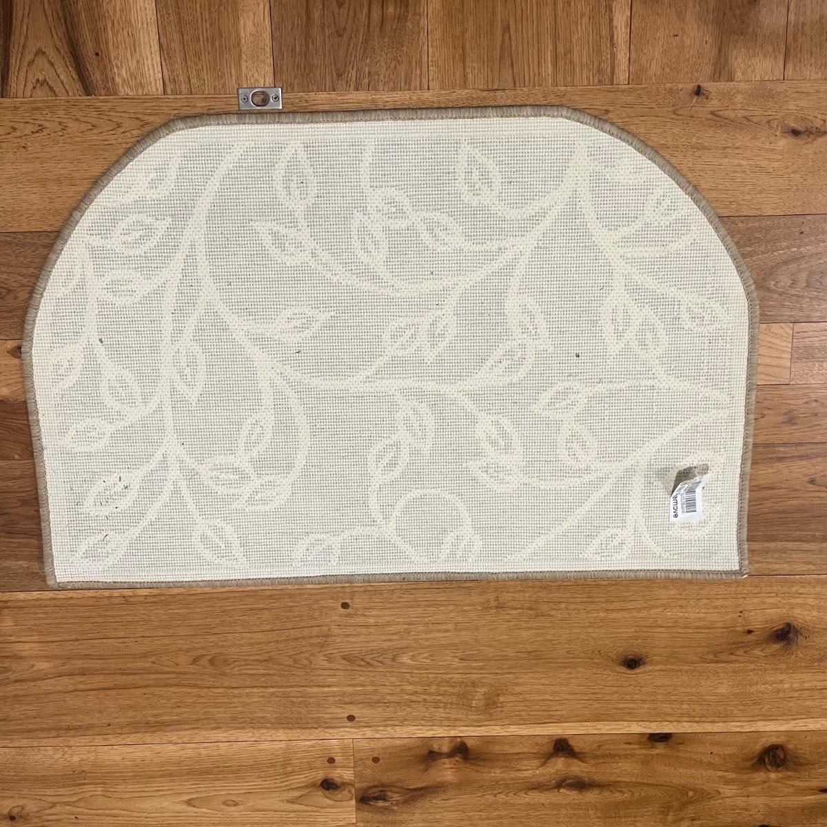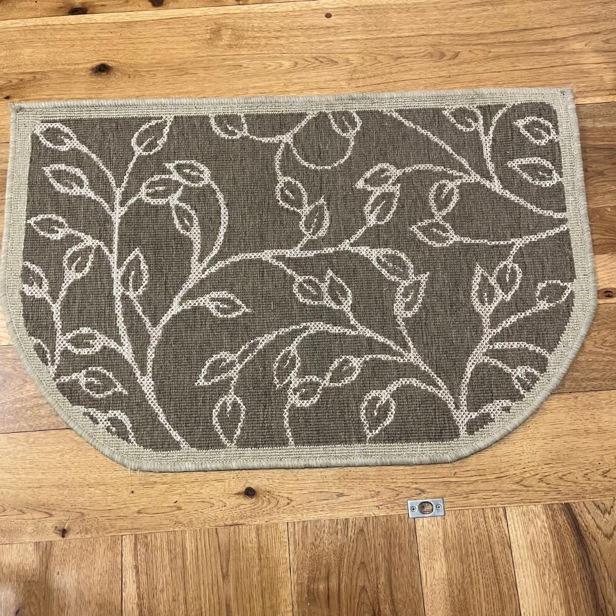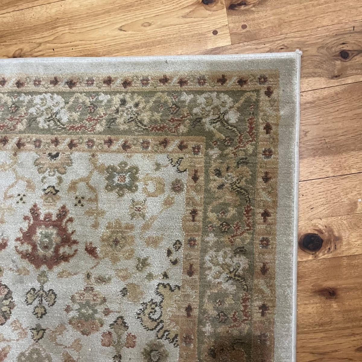 Lot includes a Ralph Lauren area rug that measures 50” x 54” and a door mat. Rug could use a cleaning.