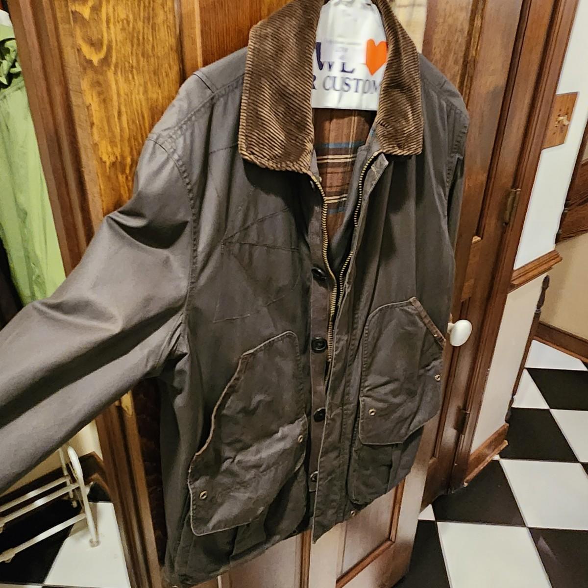 POLO RALPH LAUREN Leather Plaid Lined Field Jacket Chore Coat size L w Oilcloth Dressing