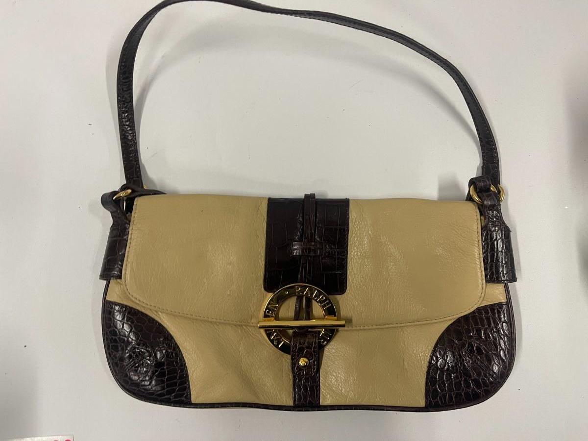 Ralph Lauren Two Tone Leather Handbag With Toggle Clasp