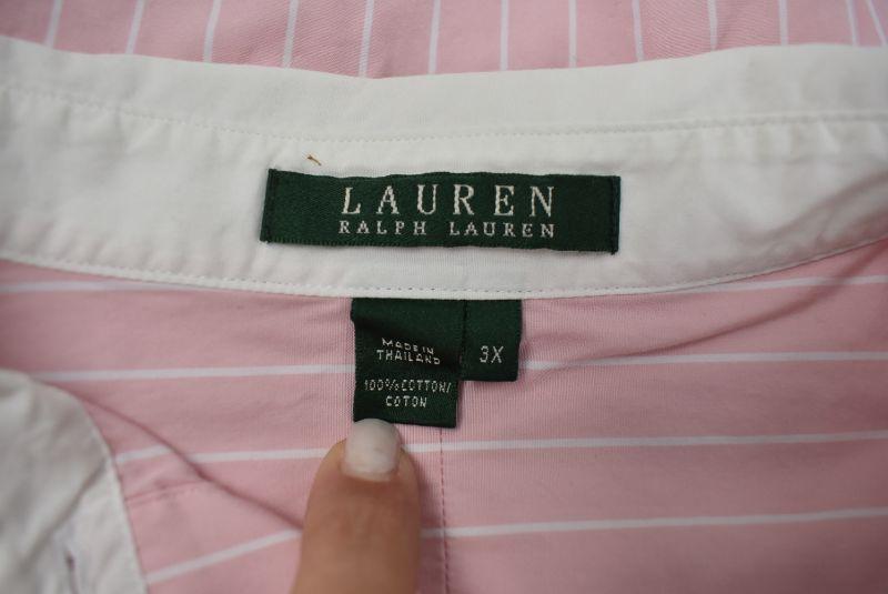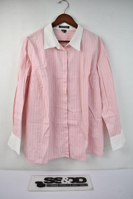 Ralph Lauren Women's Long Sleeve Button Shirt, Pink w/ White Stripes, sz 3XL