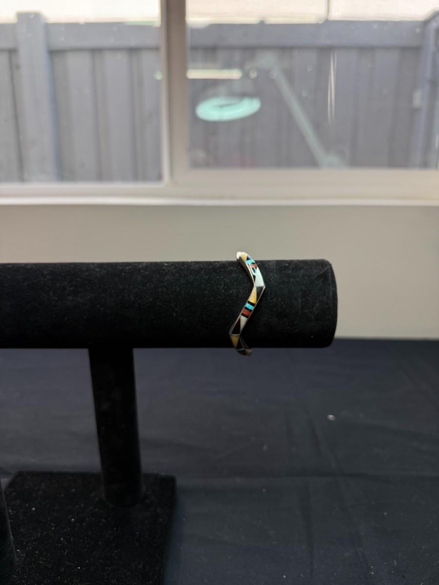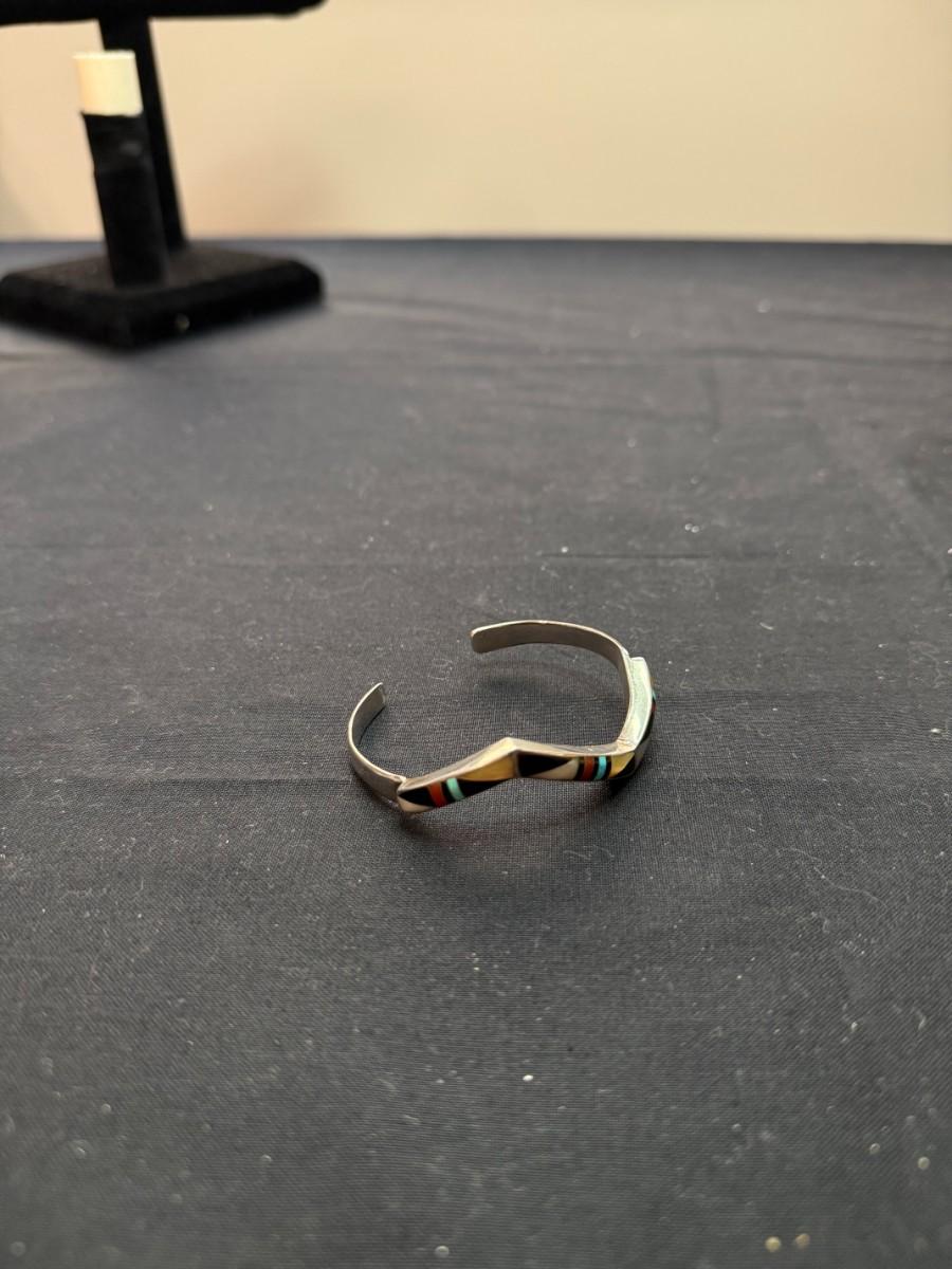 Ralph & Lillie Kallestewa Sterling Silver Turquoise shell w/ Red Coral inlay Bracelet