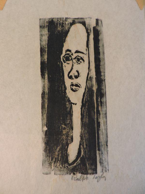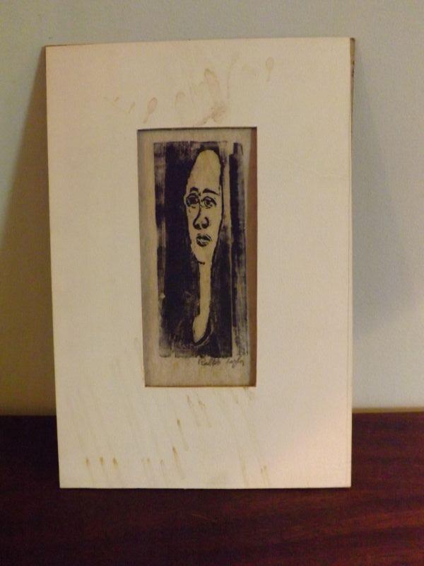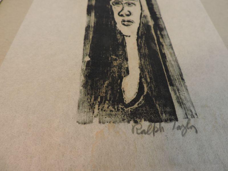 Ralph Taylor Signed Woodblock self-portrait. Print-3"x7" " mat-9"x12"" **Please read Terms and Conditions before placing a bid. Pick up is by appoitment the following week in Mantua, New Jersey. Shipping is available at buyer's expense. All sales are final. All sales are as is, where is. Please review all photos. Any props included in photos are not included in listing. All measurements are approximate.