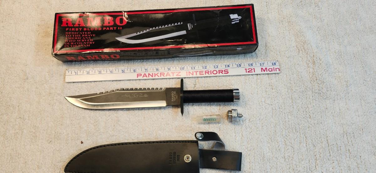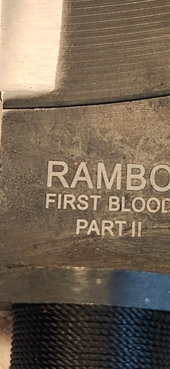 Rambo 2 hand signed version tied with black rope tactical survival knife saber