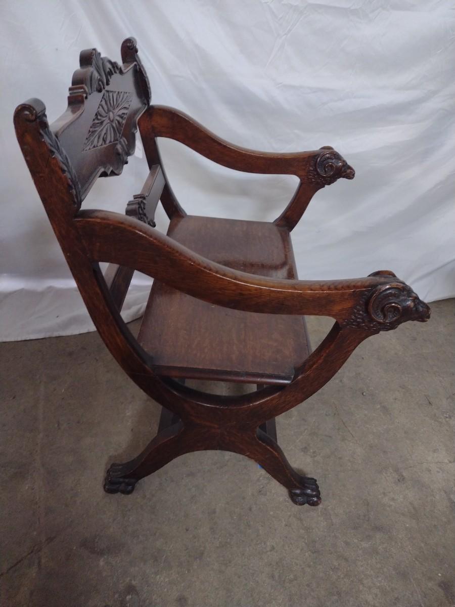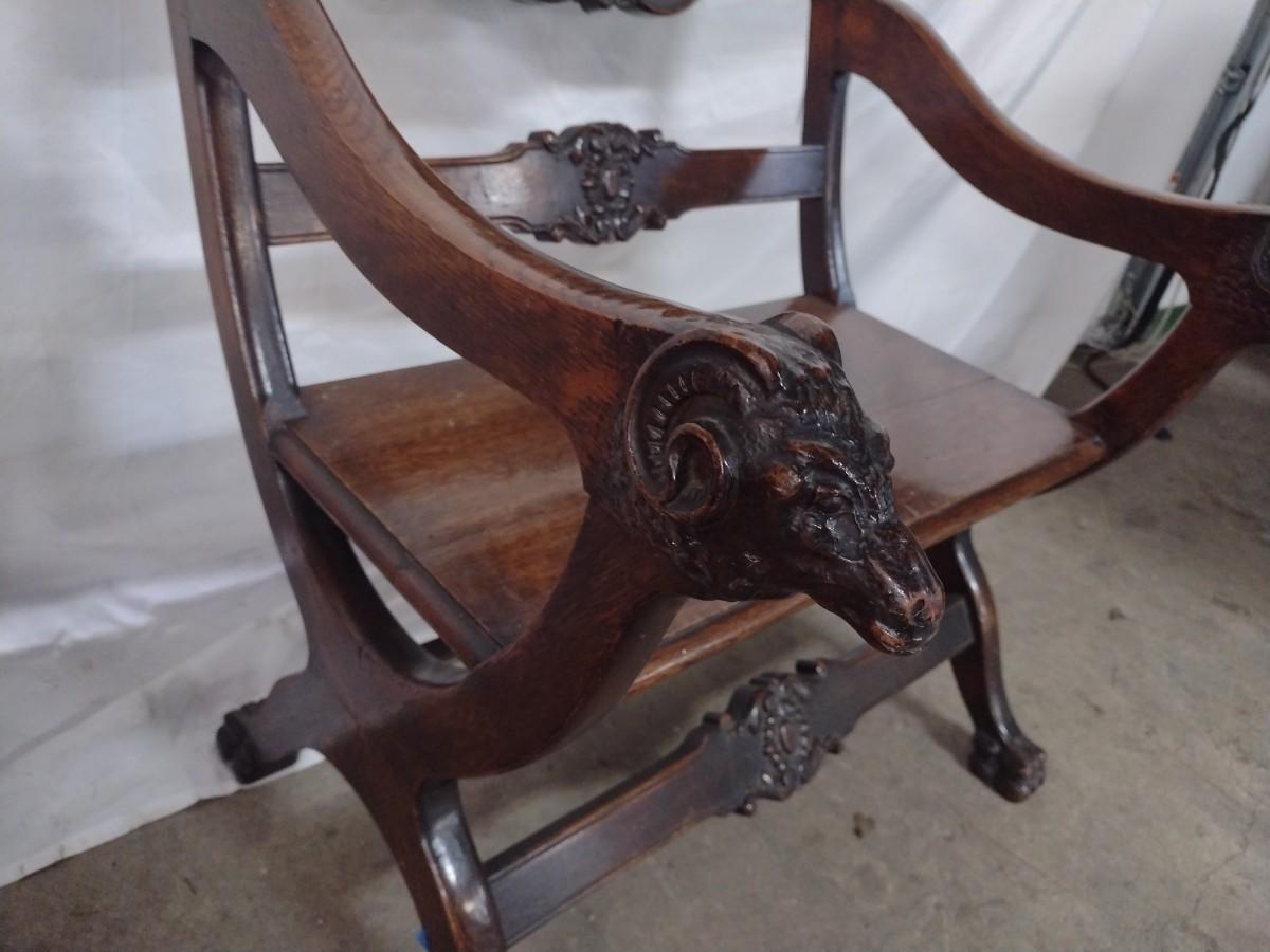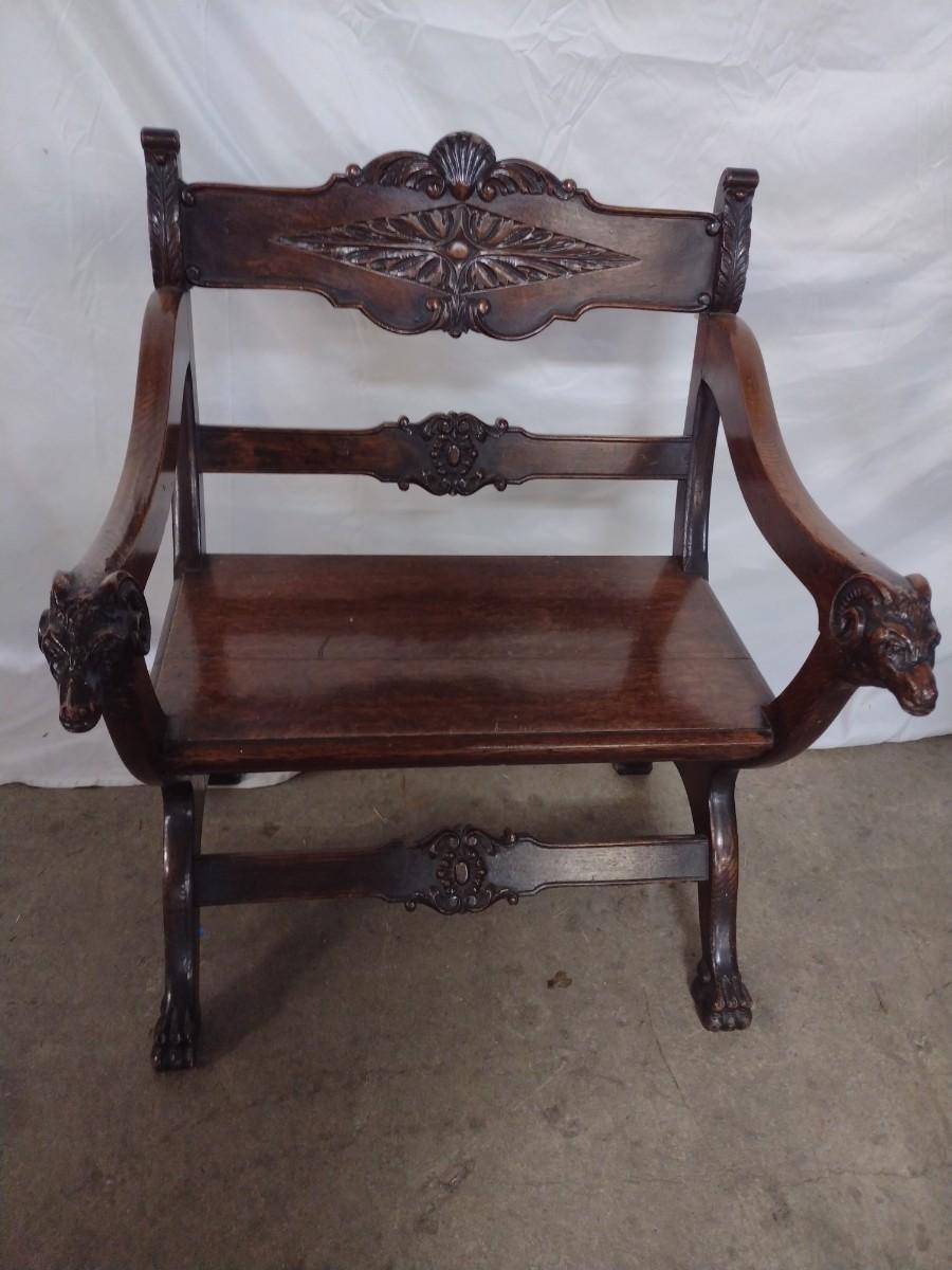 Antique Savonarola Design Solid Wood Ram's Head Chair