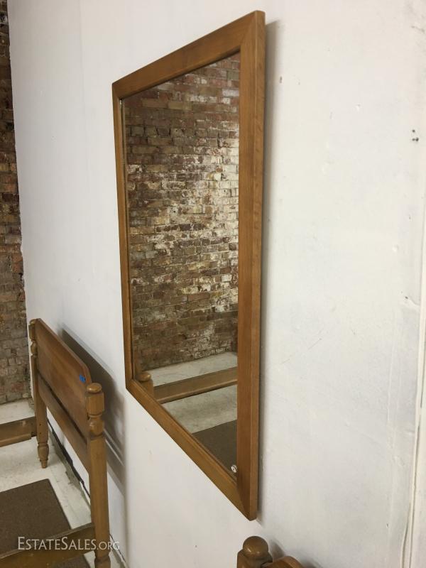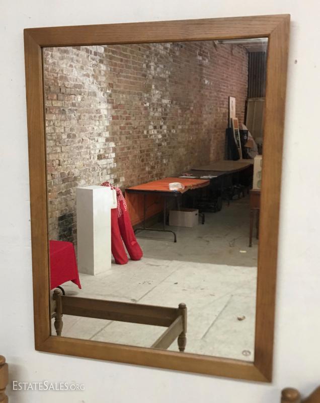 Mirror is in good condition, wear from use. Measures 42x32 will hang either direction.