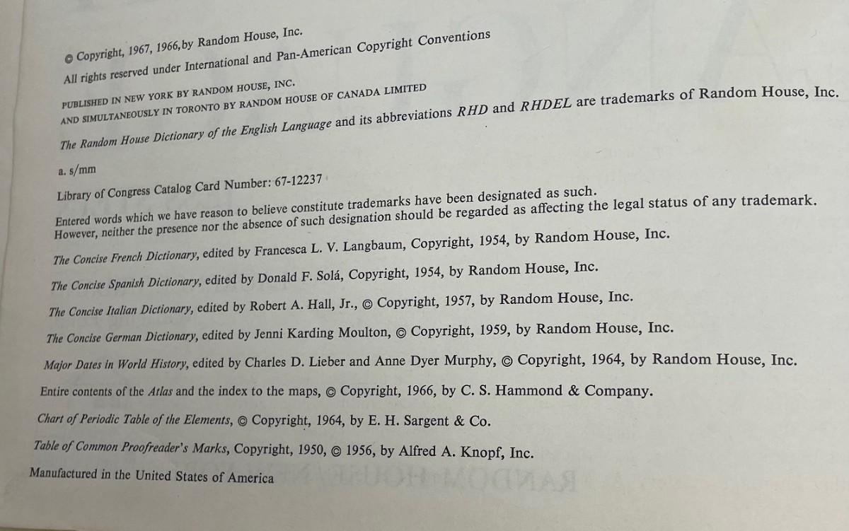 Description: Random House, The Random House Dictionary; Material: Paper
